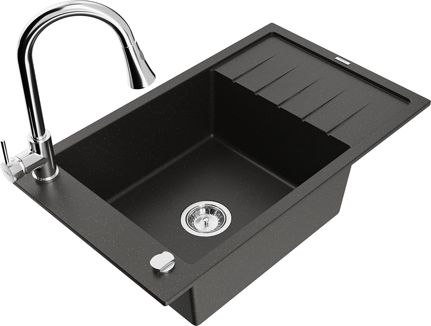 Mexen Elias granieten spoelbak 1-komors met afdruipplaat en keukenmengkraan Elia, zwart/goud metallic - 6511-75-670101-00