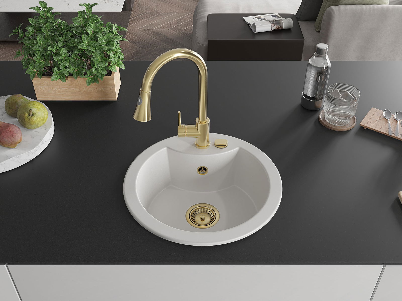 De gootsteen is gemaakt van hoogwaardig graniet. Het vormt een elegante en vooral praktische aanvulling op elke keuken, ongeacht de stijl. De hoge kwaliteit en duurzaamheid van graniet zorgen voor jarenlang gebruik.