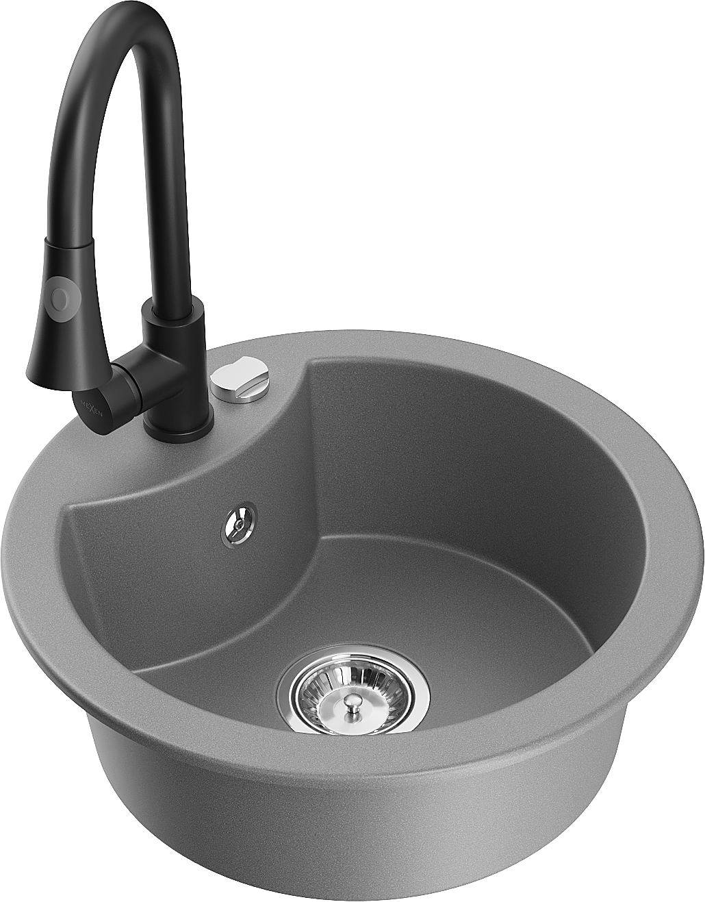 Mexen Diego granieten spoelbak 1-kompartiment met keukenmengkraan Elia, grijs - 6512-71-670101-70