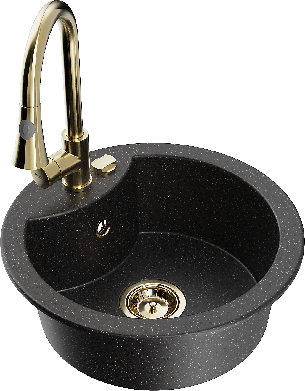 Mexen Diego granieten spoelbak 1-komerig met keukenmengkraan Elia, zwart/zilver metallic - 6512-73-670101-50