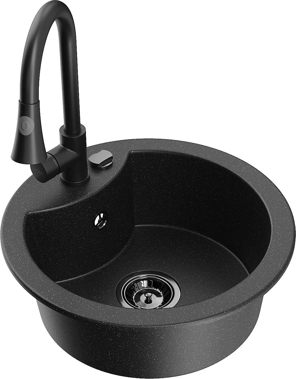 Mexen Diego granieten spoelbak met 1 bak en keukenmengkraan Elia, zwart/zilver metallic - 6512-73-670101-70-B