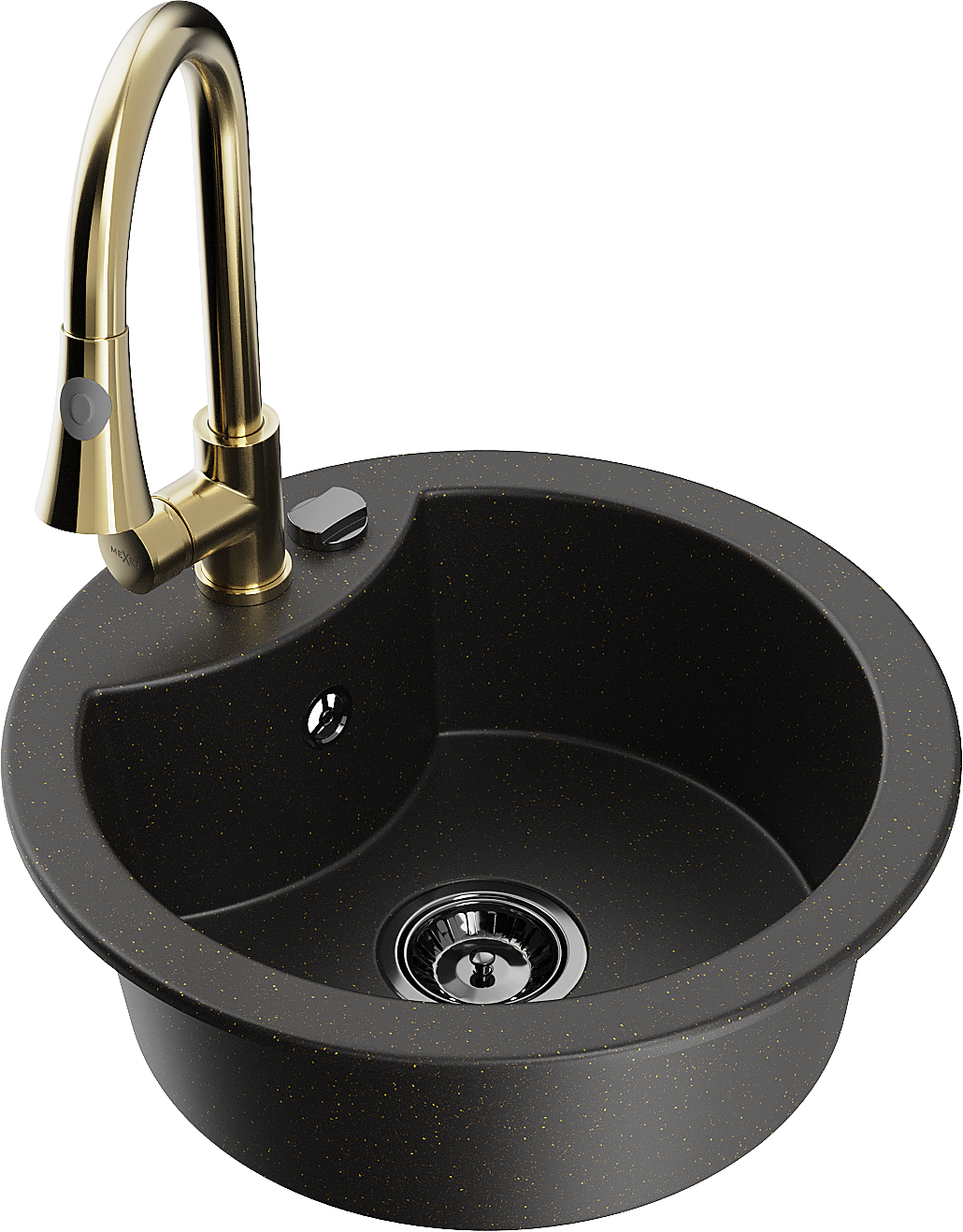 Mexen Diego granieten spoelbak 1-kompartiment met keukenmengkraan Elia, zwart/goud metallic - 6512-75-670101-50-B