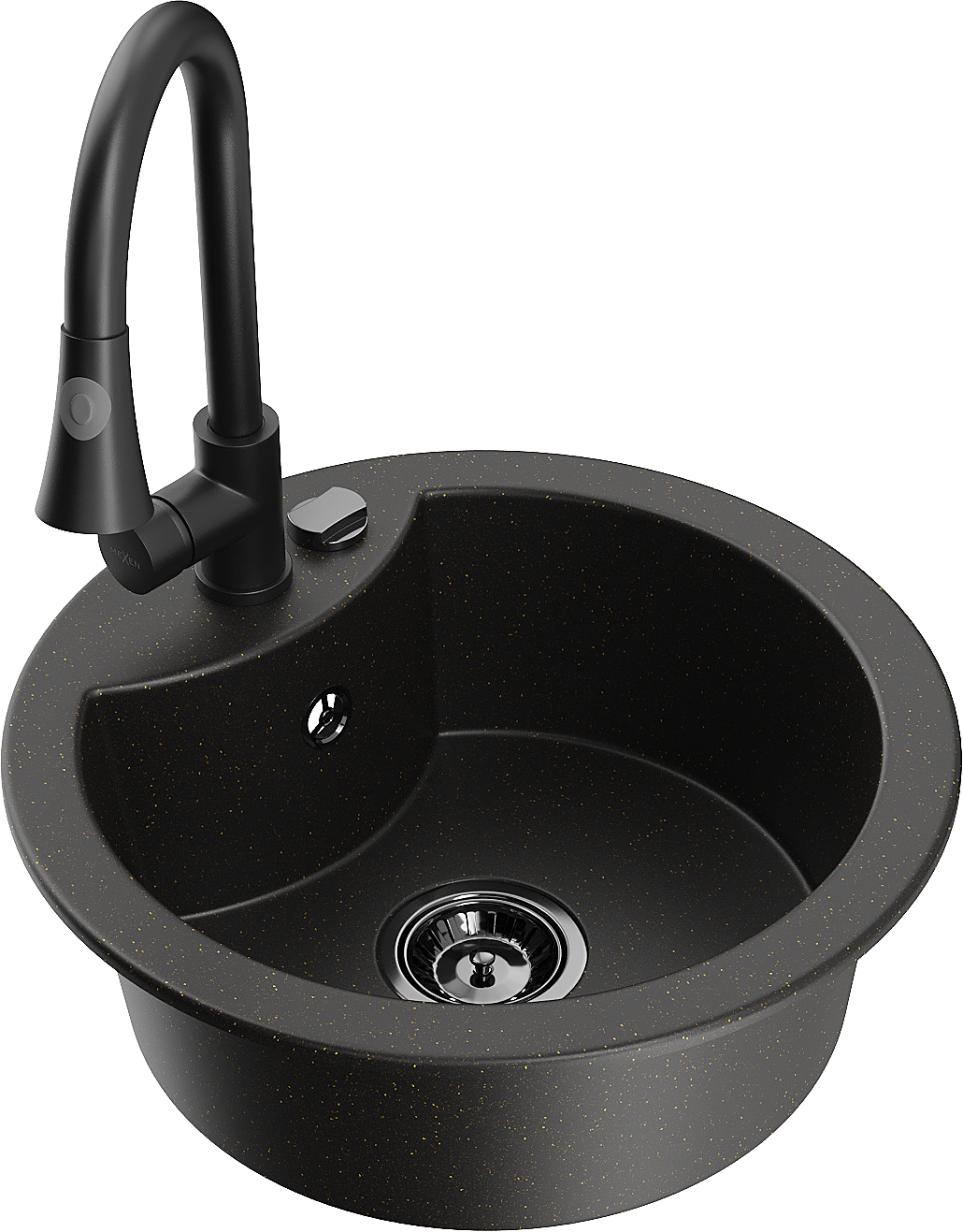 Mexen Diego granieten gootsteen enkelvoudig met keukenmengkraan Elia, zwart/gouden metallic - 6512-75-670101-70-B
