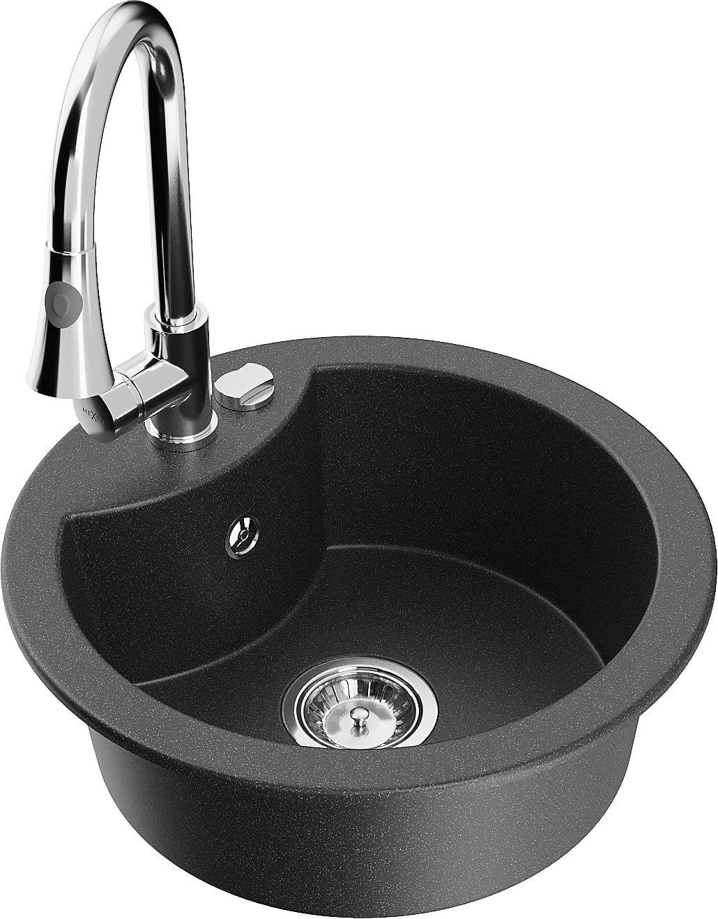 Mexen Diego granieten spoelbak met 1 bak en Elia keukenkraan, zwart gespikkeld - 6512-76-670101-00