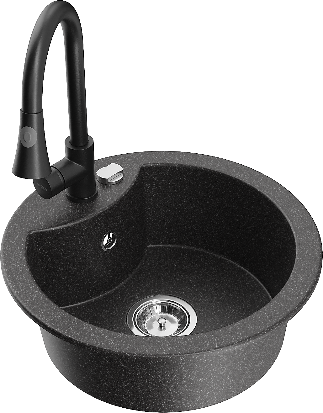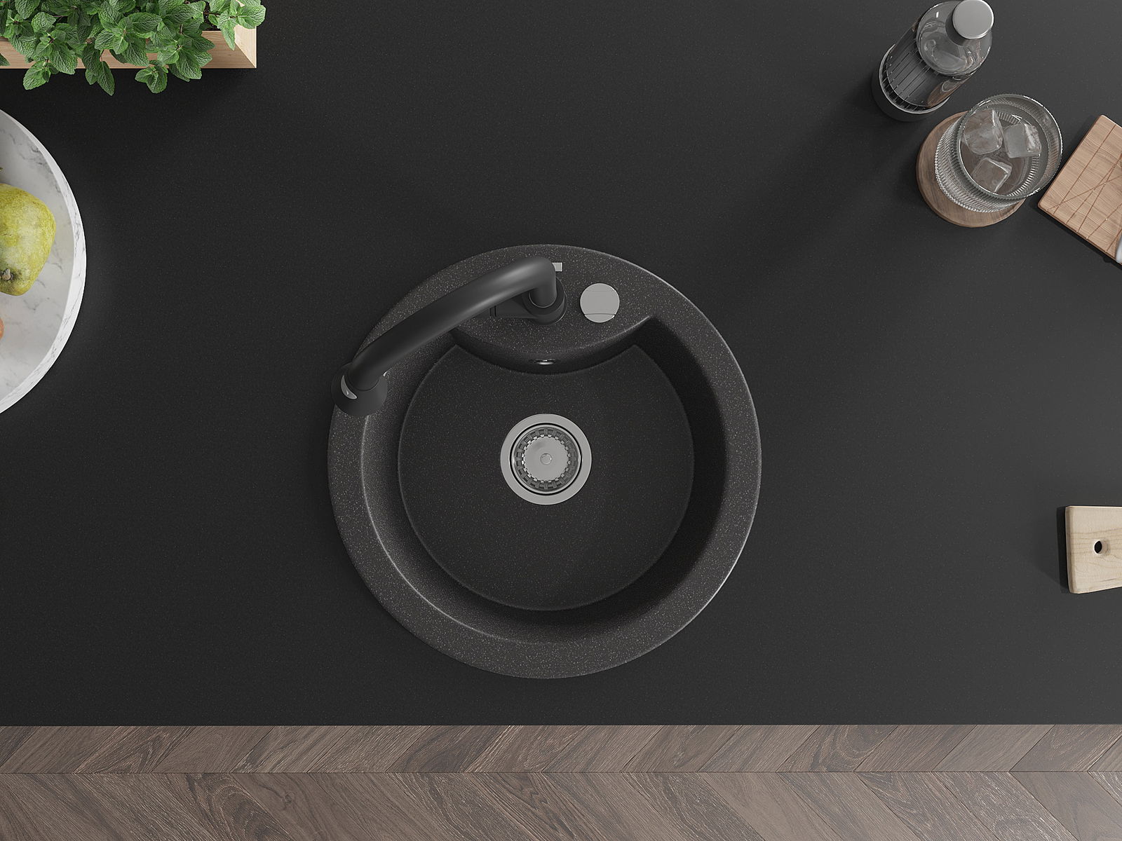 Mexen Diego granieten spoelbak 1-kommer met keukenmengkraan Elia, zwart gespikkeld - 6512-76-670101-70