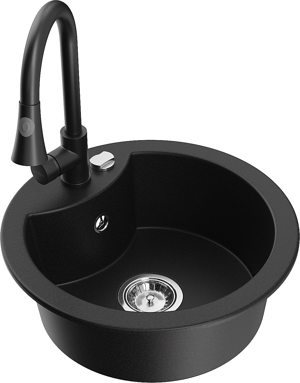 Mexen Diego granieten gootsteen 1-komor met keukenmengkraan Elia, zwart - 6512-77-670101-70
