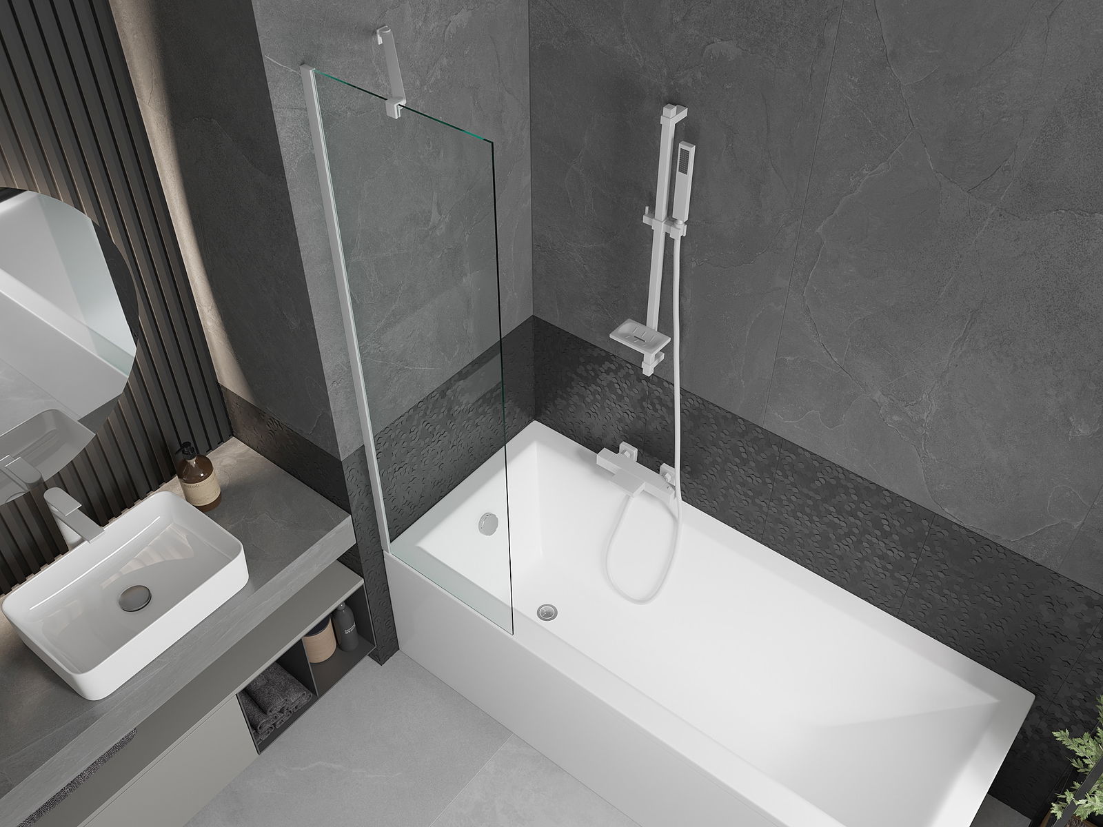 Effectieve bescherming tegen het verspreiden van water tijdens het baden. Het scherm heeft afdichtingen die perfect passen bij de glasplaat en de rand van het bad. Functionele oplossing die veiligheid en eenvoudig onderhoud garandeert.