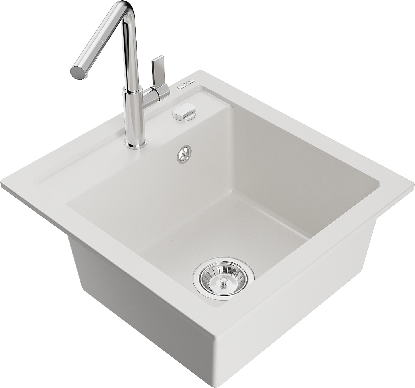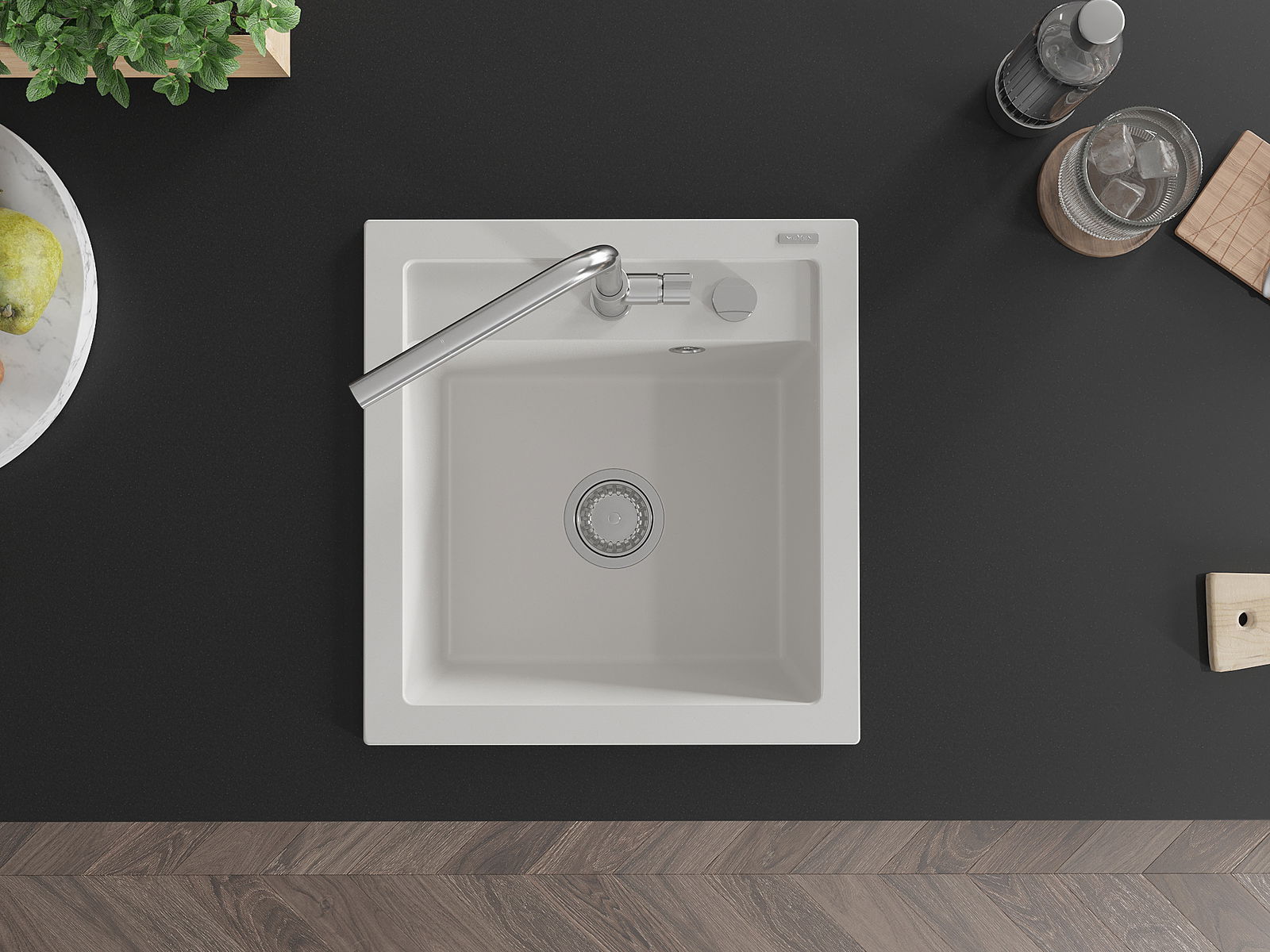 Het oppervlak van de gootsteen is zeer goed uitgehard en onderscheidt zich door uitzonderlijke weerstand tegen mechanische schade en krassen. Het duurzame materiaal zorgt ervoor dat de gootsteen er jarenlang goed uit blijft zien.