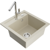 Het oppervlak van de gootsteen is bestand tegen vlekken en verkleuringen, waardoor het gemakkelijk schoon te houden is en zijn kleur behoudt gedurende een lange gebruiksperiode. Een esthetische en praktische aanvulling op elke keuken.