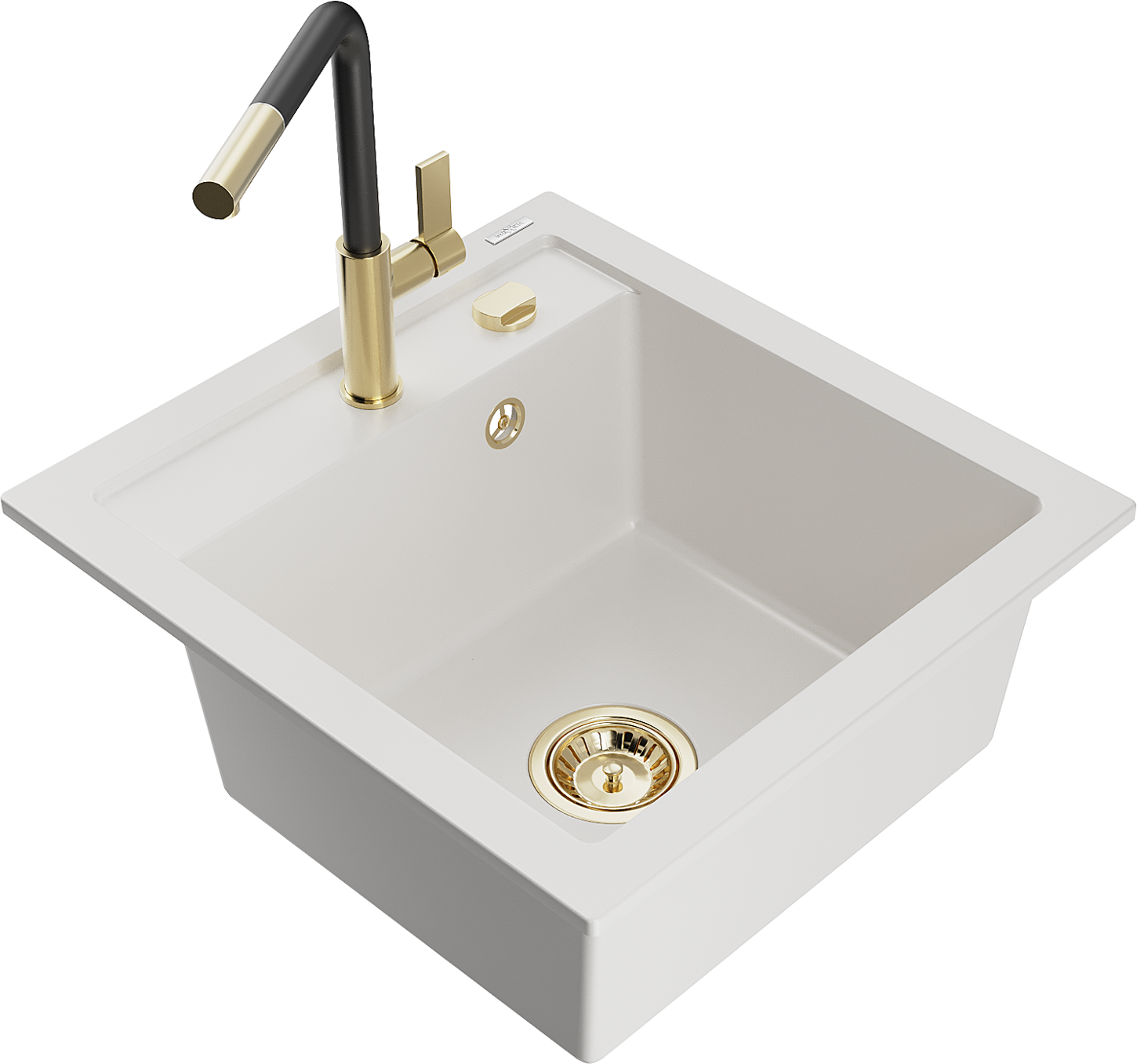 Mexen Vito granieten gootsteen met 1 kom en Flora keukenkraan, wit - 6503-20-670401-57-G
