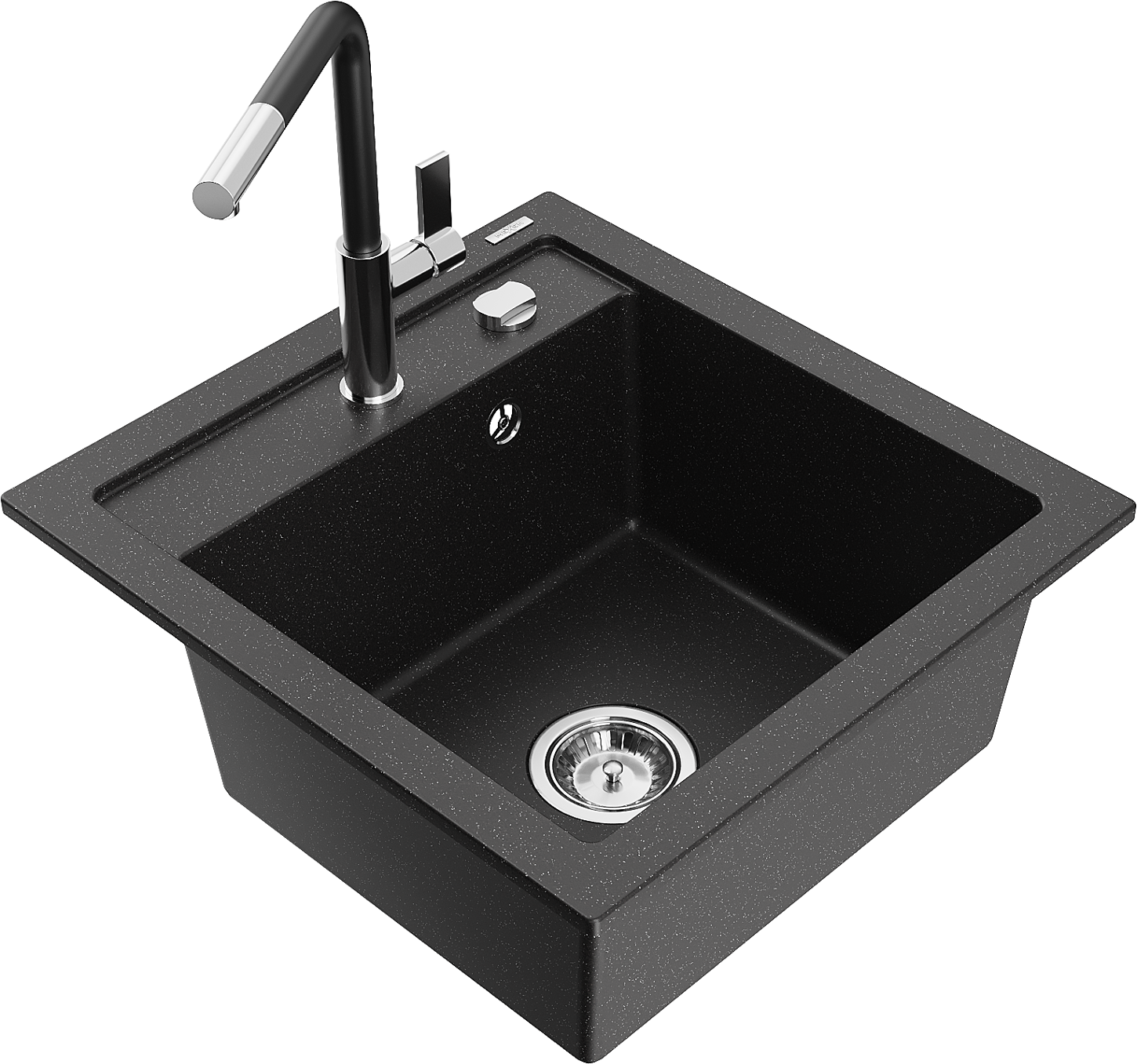 Mexen Vito granieten spoelbak 1-komerig met keukenmengkraan Flora, zwart/zilveren metallic - 6503-73-670401-07