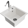 Het oppervlak van de gootsteen is bestand tegen vlekken en verkleuringen, waardoor het gemakkelijk schoon te houden is en zijn kleur behoudt gedurende een lange gebruiksperiode. Een esthetische en praktische aanvulling op elke keuken.