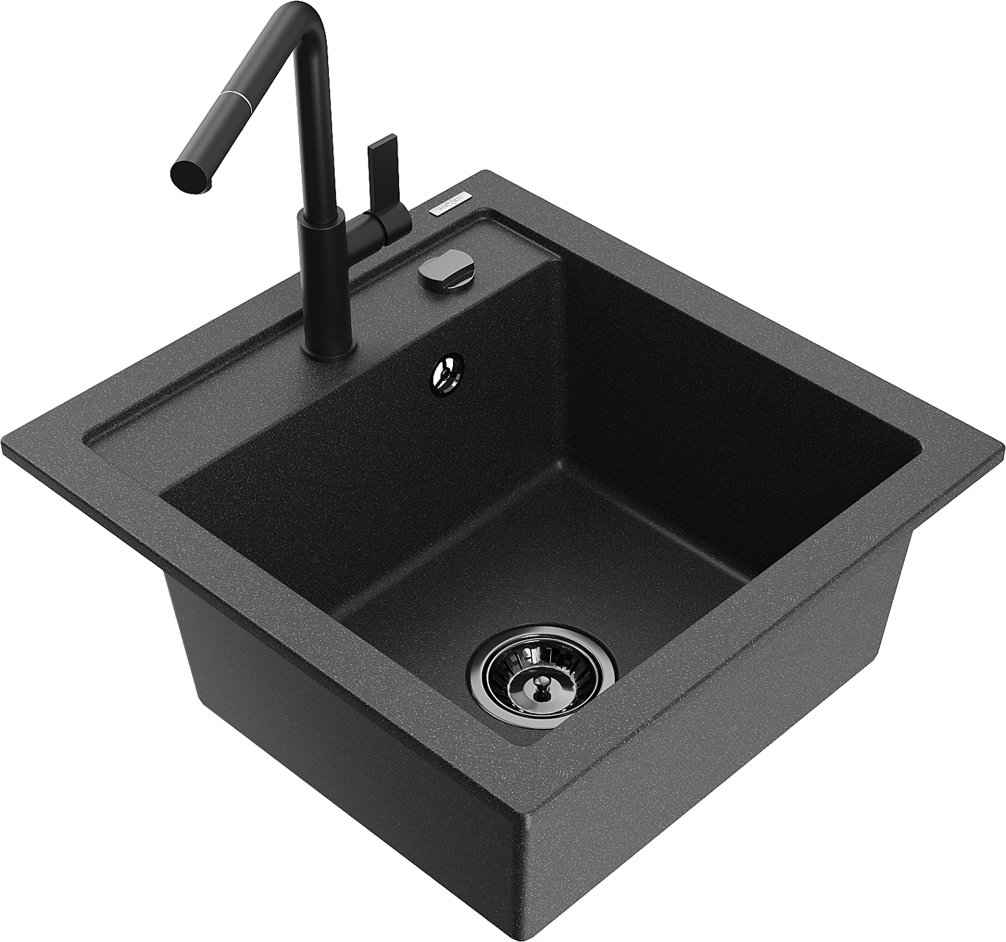 Mexen Vito granieten spoelbak met 1 bak en Flora keukenkraan, zwart gespikkeld - 6503-76-670401-70-B