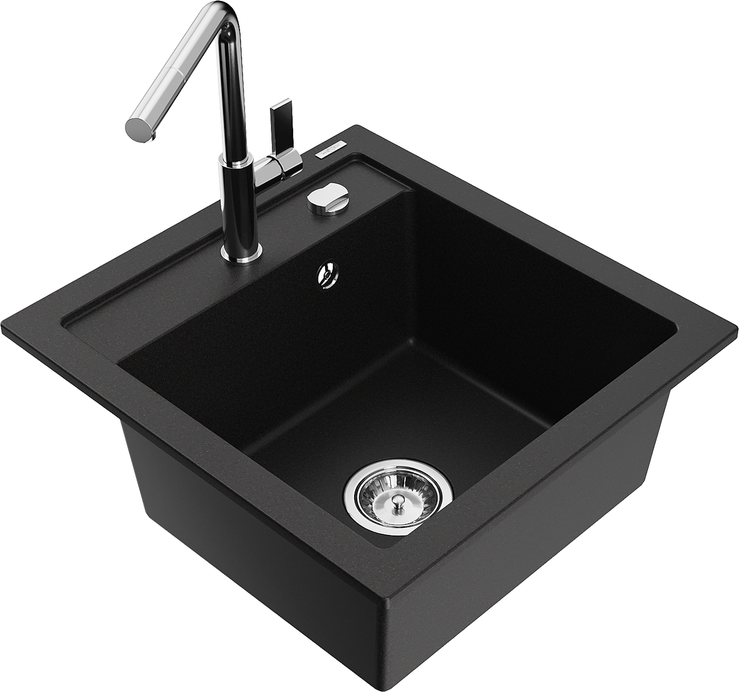 Mexen Vito granieten spoelbak 1-komerig met keukenkraan Flora, zwart - 6503-77-670401-00