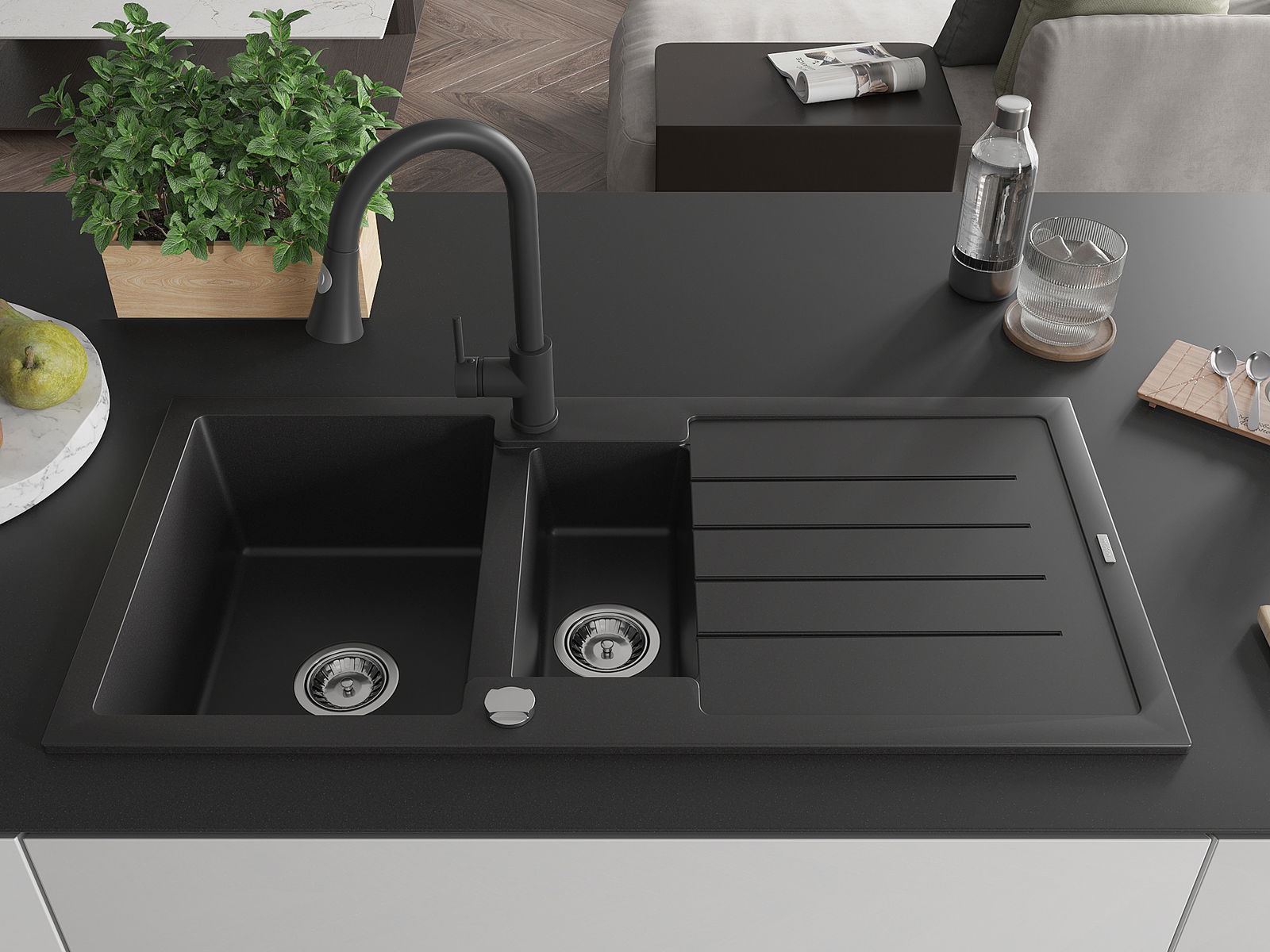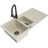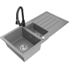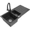 Mexen Andres granieten gootsteen 1,5-compartiment met druiprek en keukenmengkraan Elia, zwart - 6515-77-670101-70