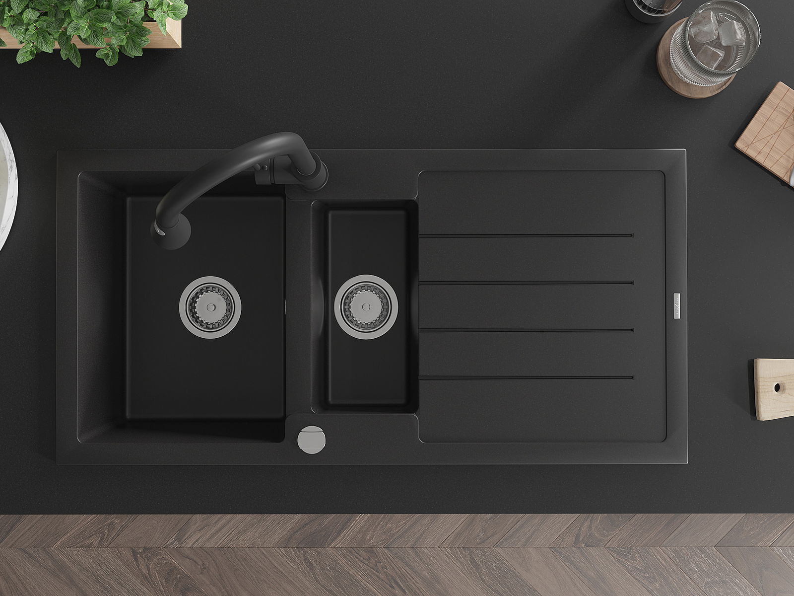 De gootsteen is gemaakt van hoogwaardig graniet. Het vormt een elegante en vooral praktische aanvulling op elke keuken, ongeacht de stijl. De hoge kwaliteit en duurzaamheid van graniet zorgen voor jarenlang gebruik.