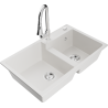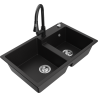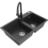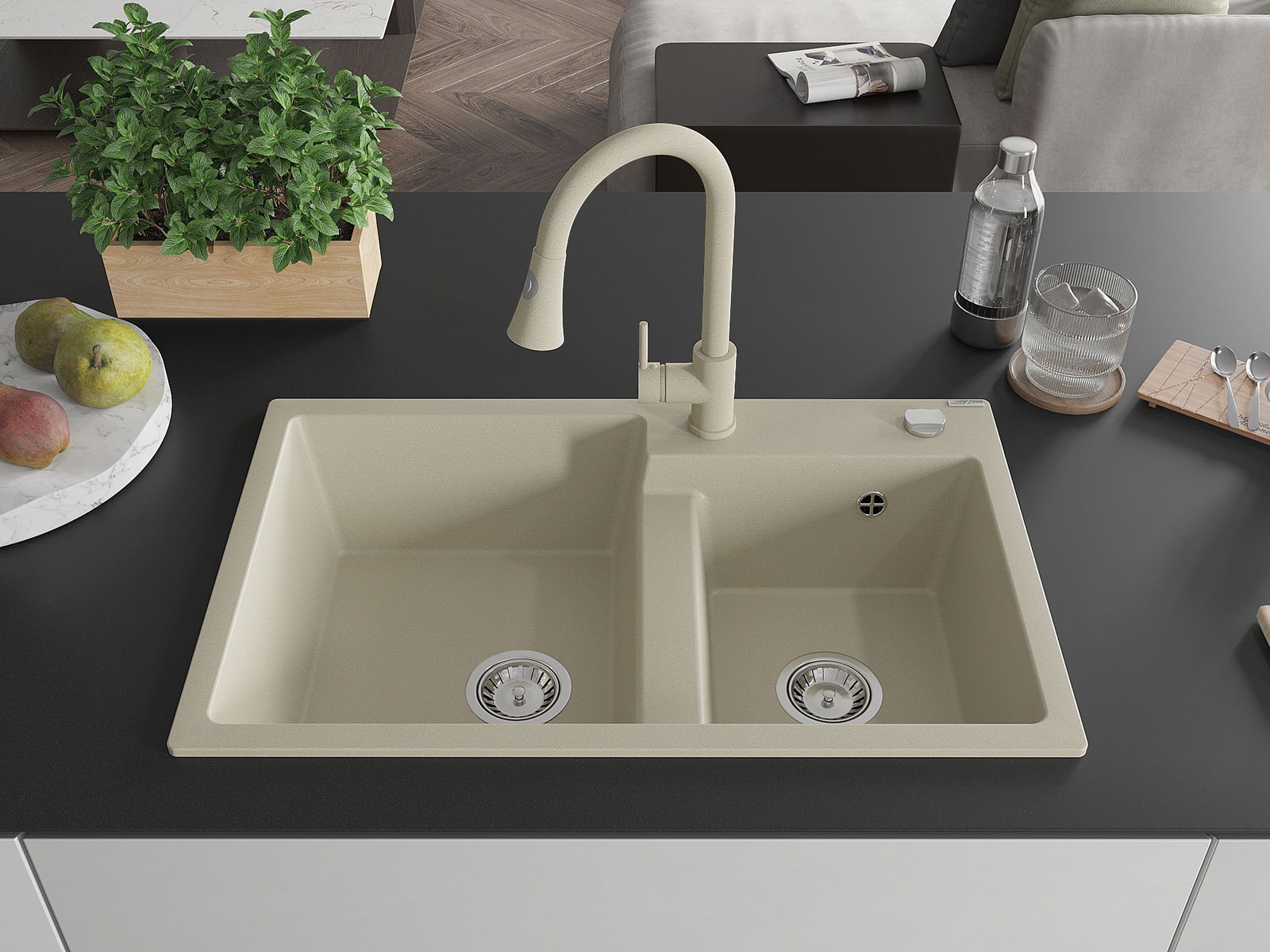 Mexen Tomas granieten gootsteen met 2 kamers en keukenmengkraan Elia, beige - 6516-69-670101-69