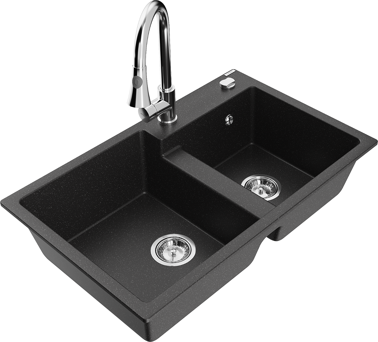 Mexen Tomas granieten spoelbak met 2 compartimenten en keukenmengkraan Elia, zwart/zilver metallic - 6516-73-670101-00