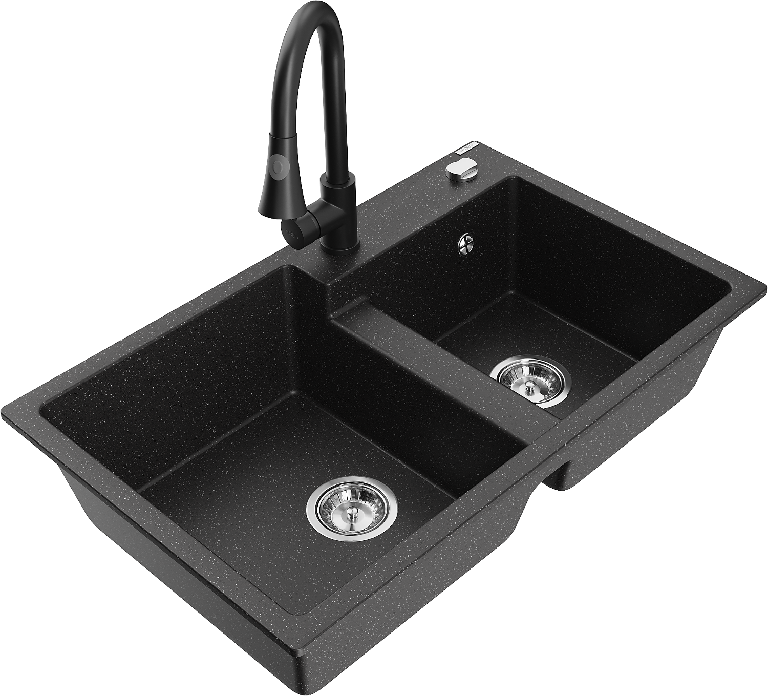Mexen Tomas granieten gootsteen 2-kamers met keukenmengkraan Elia, zwart/zilver metallic - 6516-73-670101-70