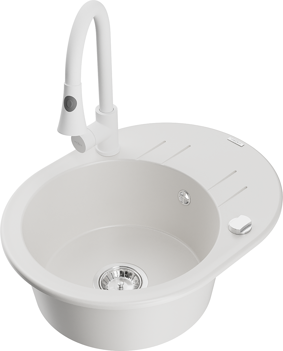 Mexen Kevin granieten spoelbak 1-kompartment met afdruipgedeelte en keukenmengkraan Elia, wit - 6517-20-670101-20