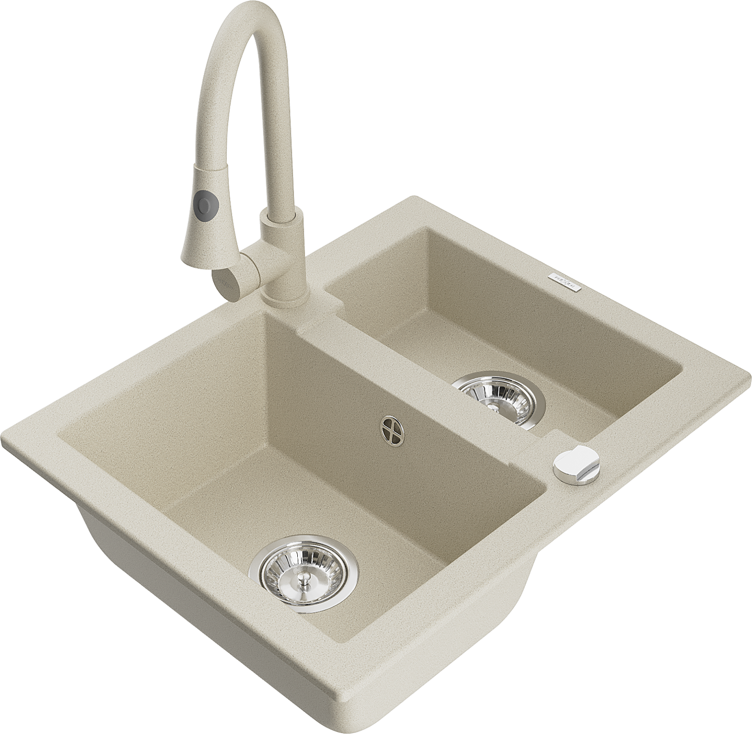 Mexen Carlos granieten gootsteen 1,5-komorige met keukenmengkraan Elia, beige - 6518-69-670101-69