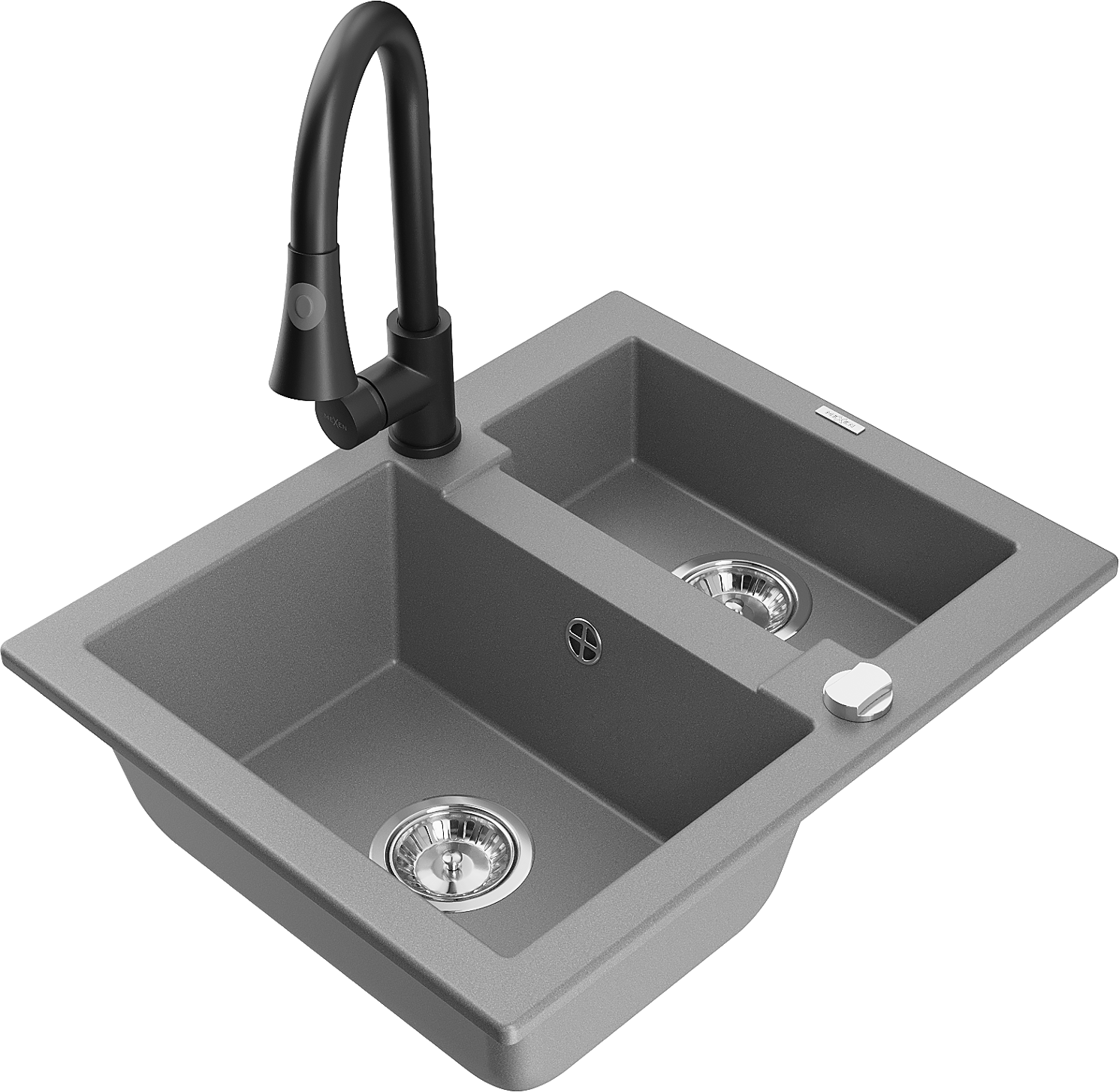 Mexen Carlos granieten gootsteen 1,5-kuips met keukenmengkraan Elia, grijs - 6518-71-670101-70