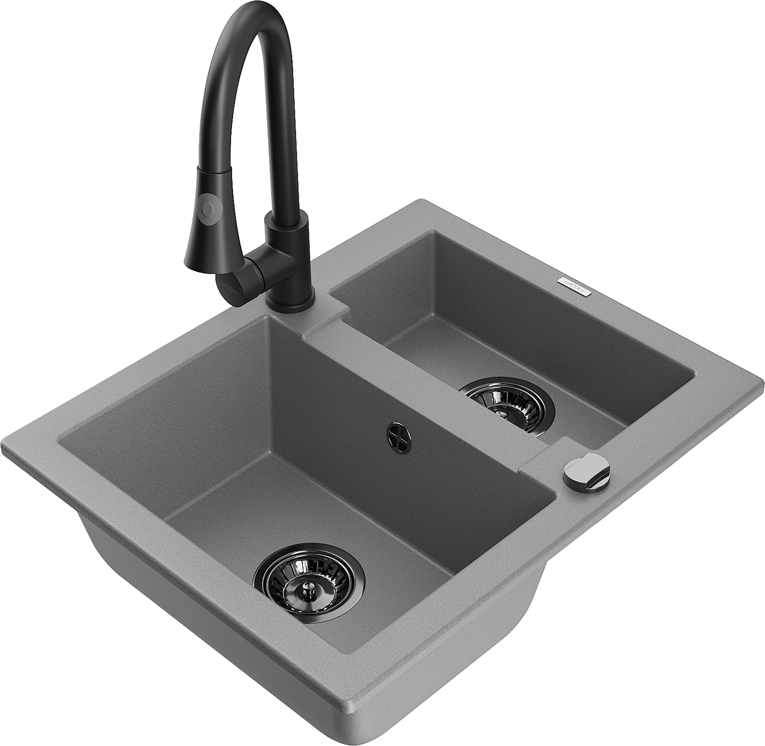 Mexen Carlos granieten gootsteen 1,5-komor met keukenmengkraan Elia, grijs - 6518-71-670101-70-B