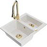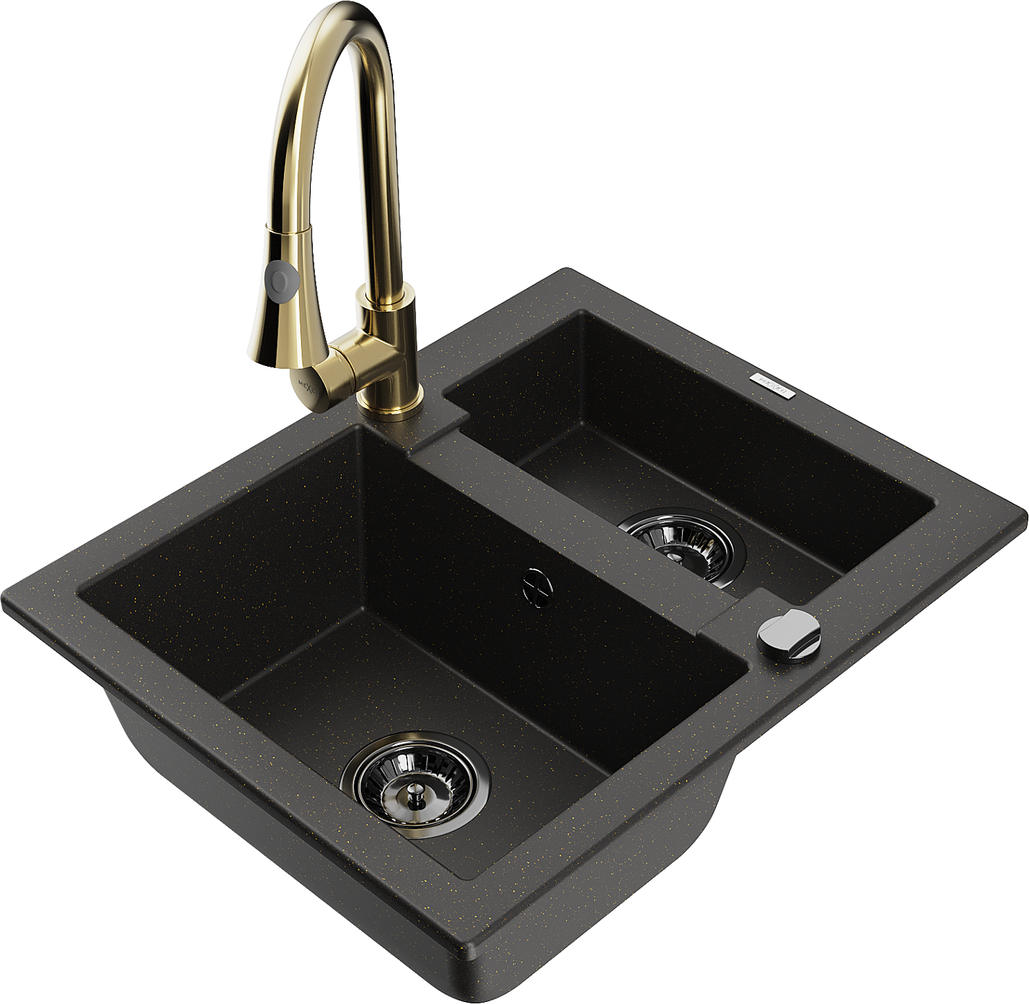 Mexen Carlos granieten gootsteen 1,5-kamer met keukenmengkraan Elia, zwart/goud metallic - 6518-75-670101-50-B