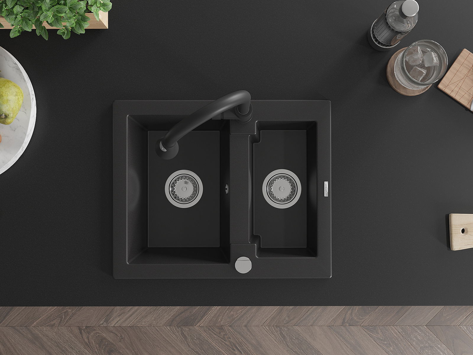 Mexen Carlos granieten gootsteen 1,5-komor met keukenkraan Elia, zwart - 6518-77-670101-70