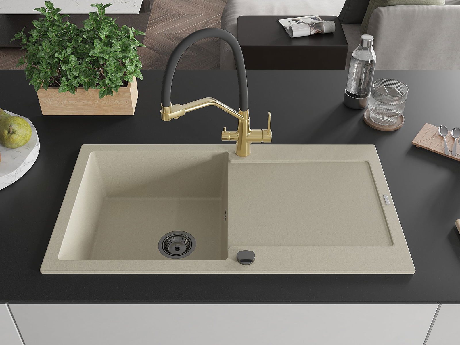 De gootsteen is gemaakt van hoogwaardig graniet. Het vormt een elegante en vooral praktische aanvulling op elke keuken, ongeacht de stijl. De hoge kwaliteit en duurzaamheid van graniet zorgen voor jarenlang gebruik.