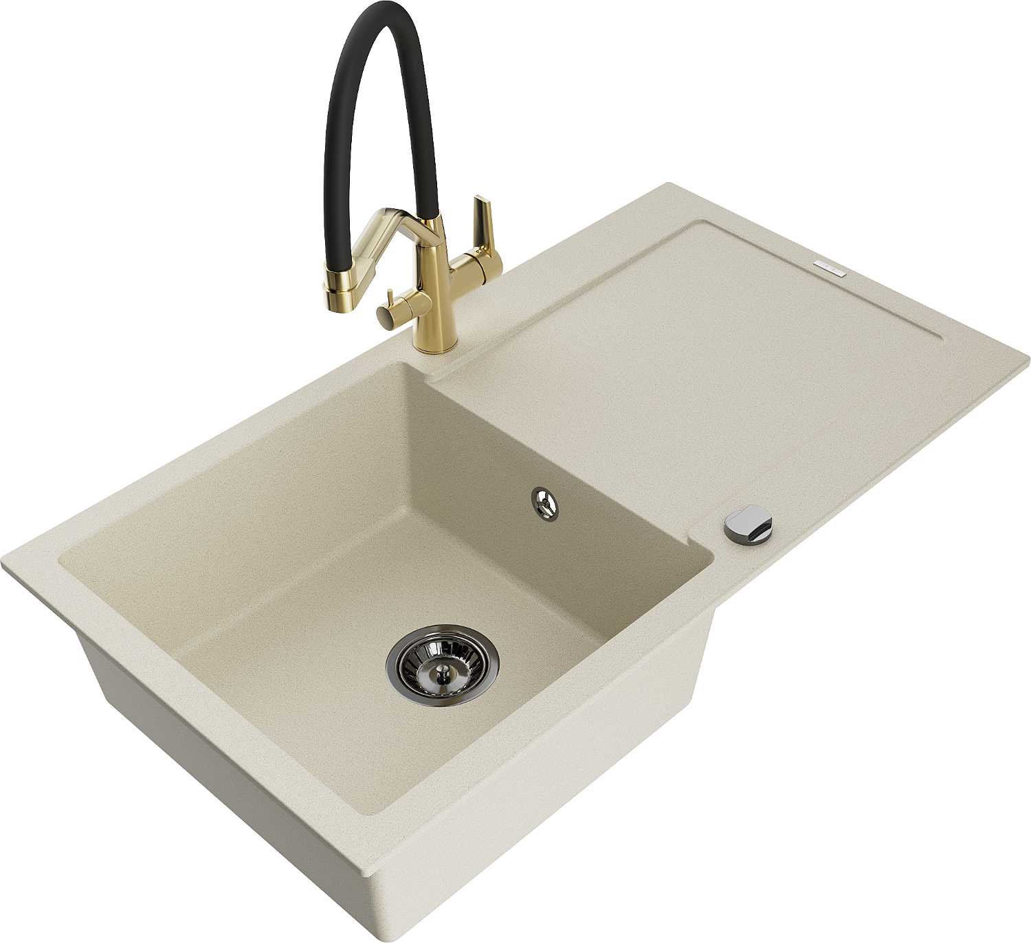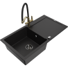 Mexen Leo granieten spoelbak 1-komors met afdruiprek en keukenmengkraan Duo, beige - 6501-69-671701-57-B