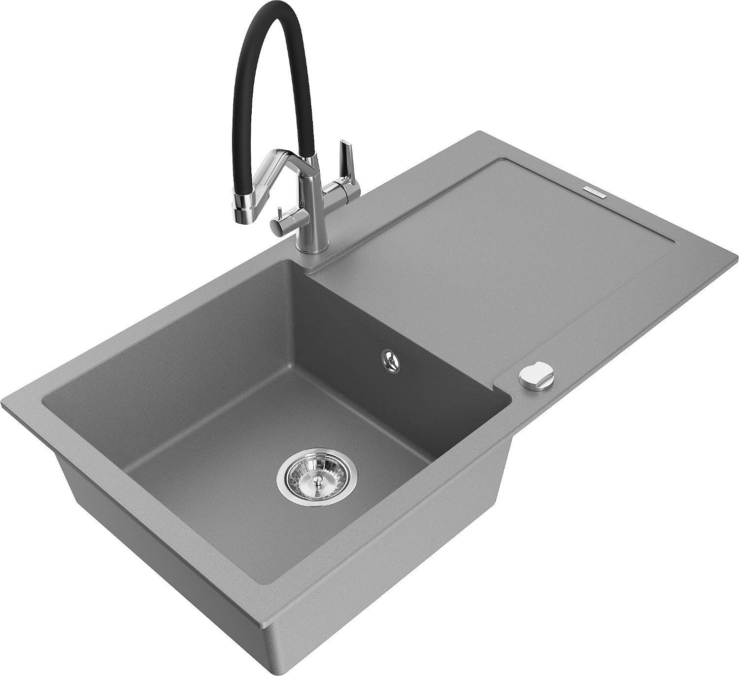 Mexen Leo granieten gootsteen 1-komorig met afdruiprek en Duo keukenmengkraan, grijs - 6501-71-671701-07