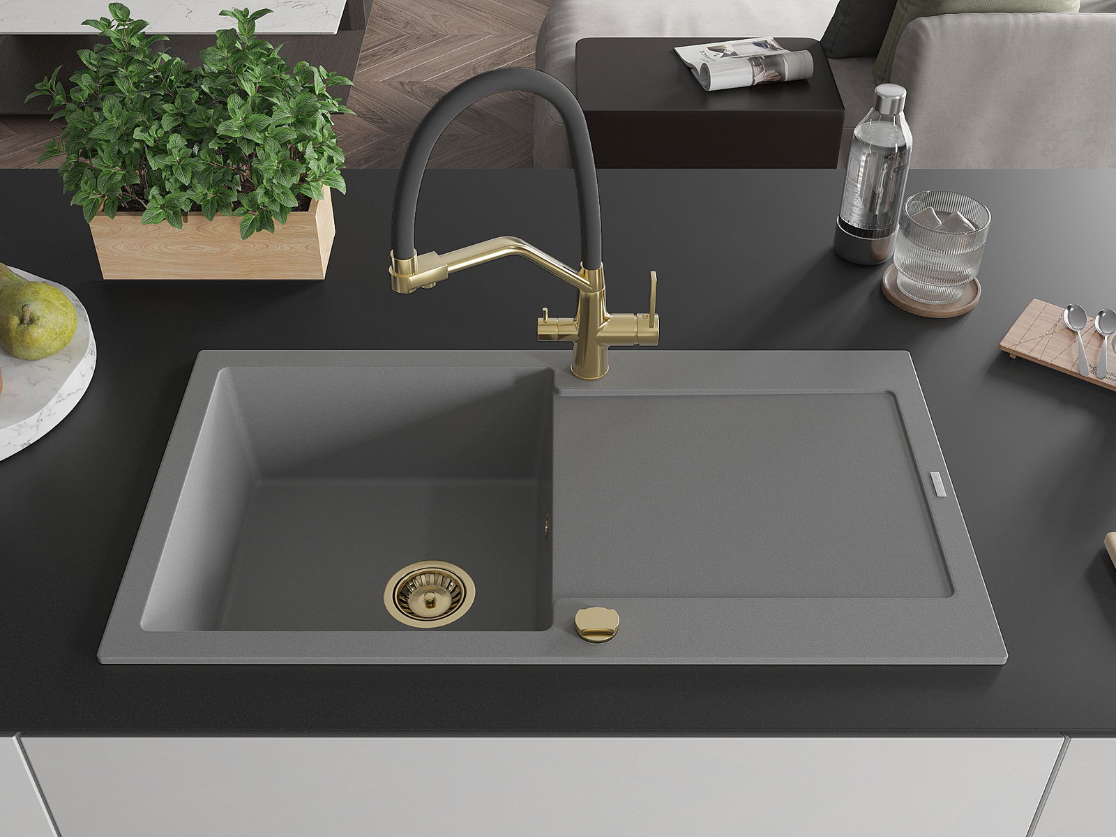 De gootsteen is gemaakt van hoogwaardig graniet. Het vormt een elegante en vooral praktische aanvulling op elke keuken, ongeacht de stijl. De hoge kwaliteit en duurzaamheid van graniet zorgen voor jarenlang gebruik.