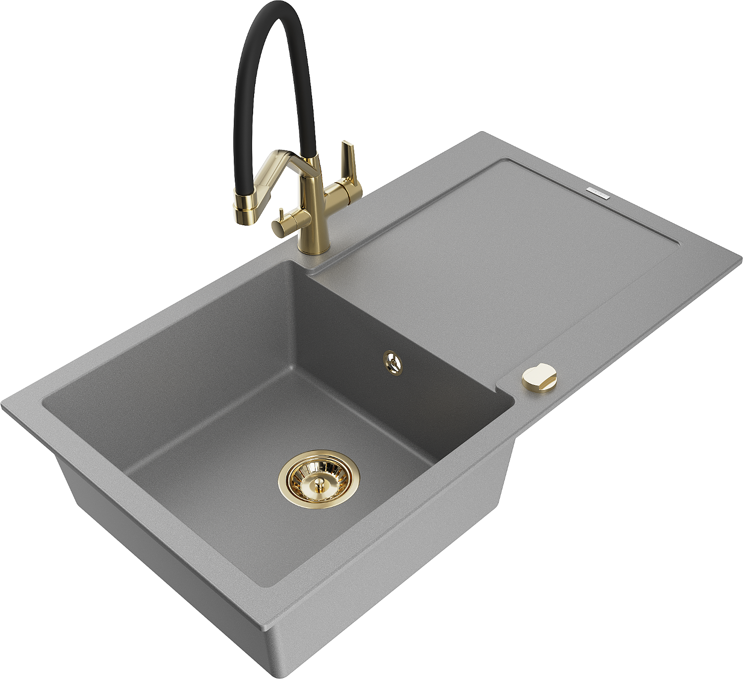 Mexen Leo granieten gootsteen 1-kompartment met afdruiprek en keukenkraan Duo, grijs - 6501-71-671701-57-G
