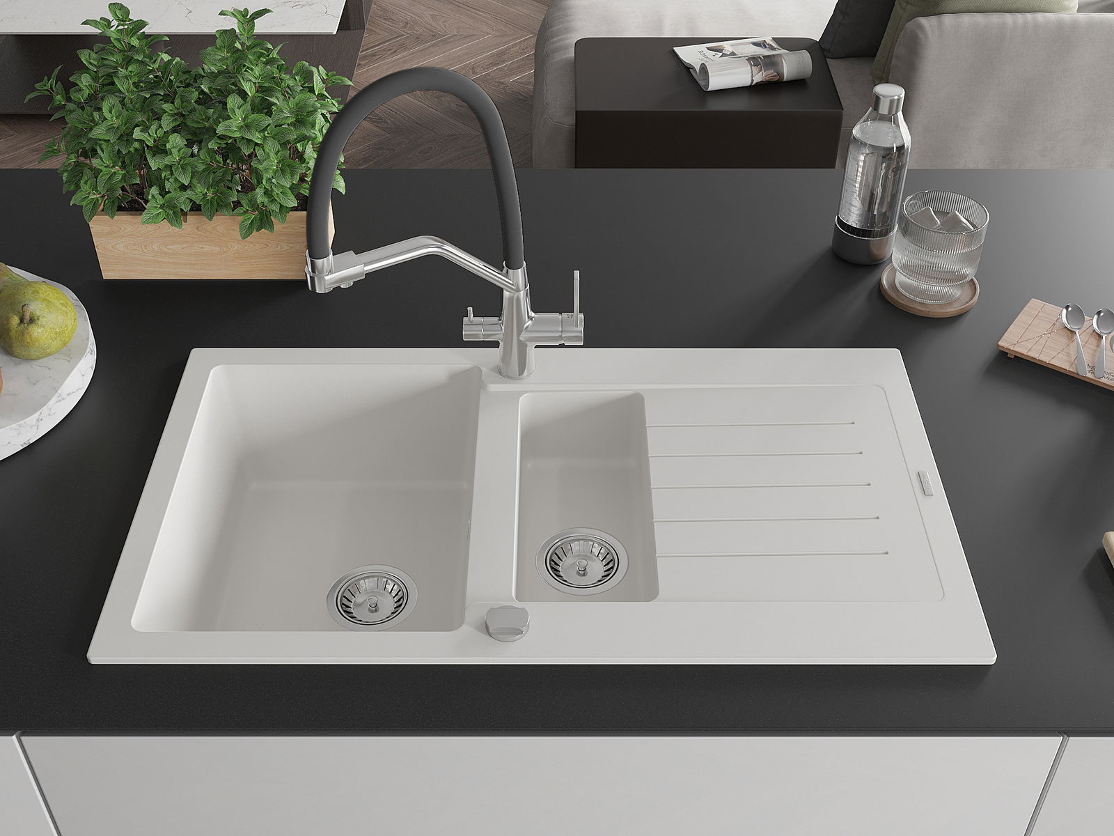 De gootsteen is gemaakt van hoogwaardig graniet. Het vormt een elegante en vooral praktische aanvulling op elke keuken, ongeacht de stijl. De hoge kwaliteit en duurzaamheid van graniet zorgen voor jarenlang gebruik.