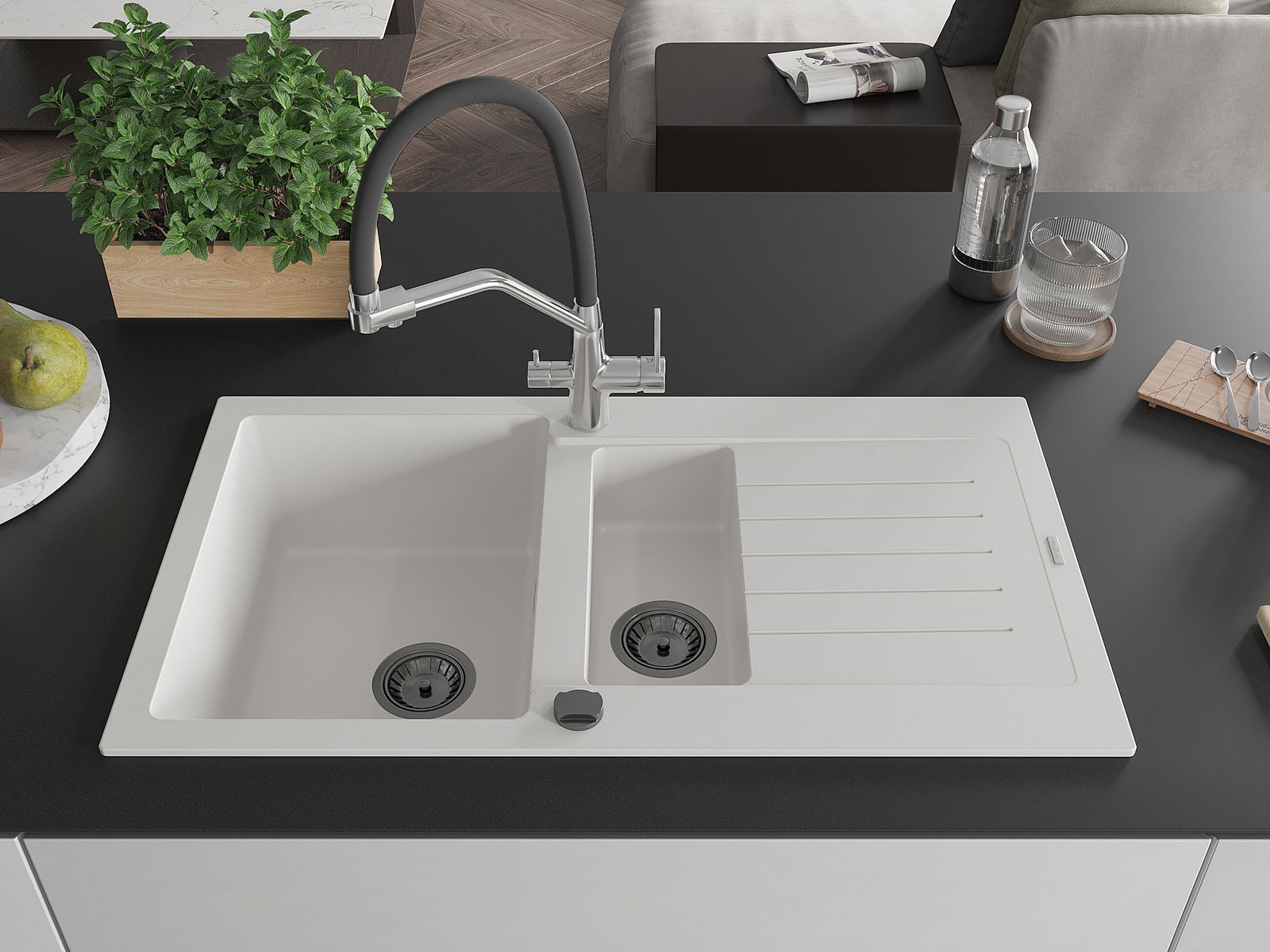 De gootsteen is gemaakt van hoogwaardig graniet. Het vormt een elegante en vooral praktische aanvulling op elke keuken, ongeacht de stijl. De hoge kwaliteit en duurzaamheid van graniet zorgen voor jarenlang gebruik.