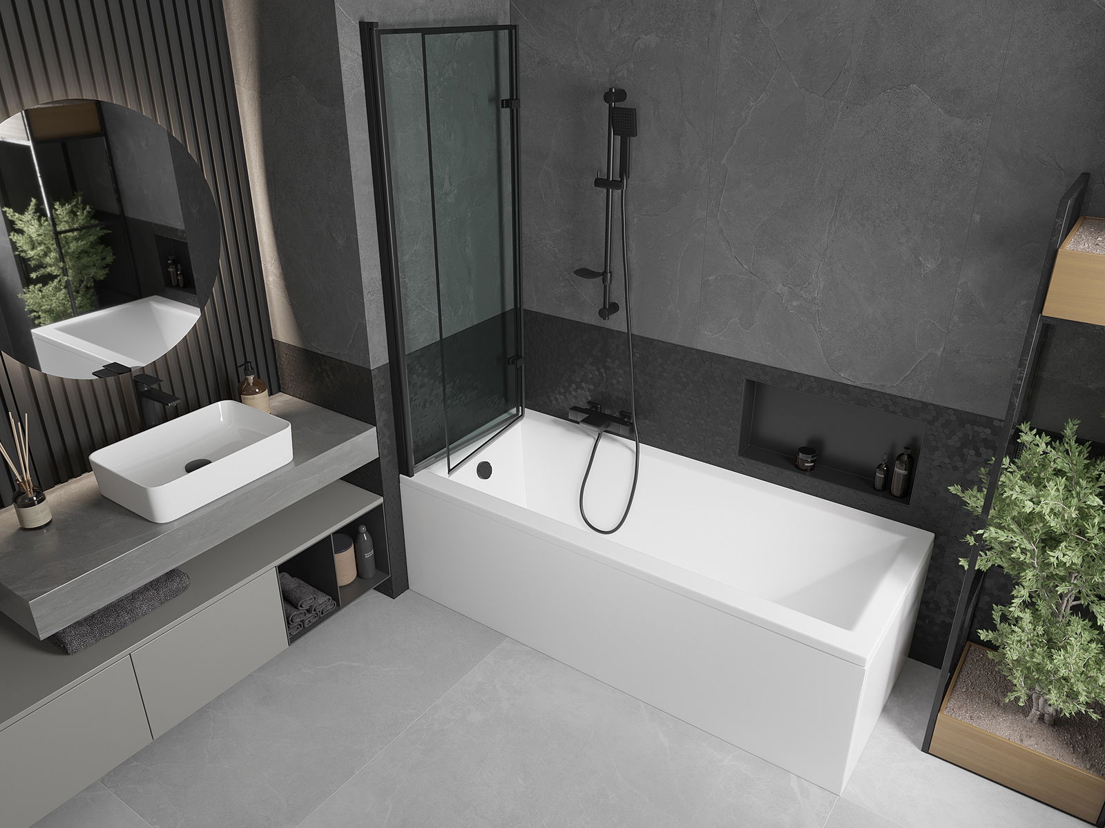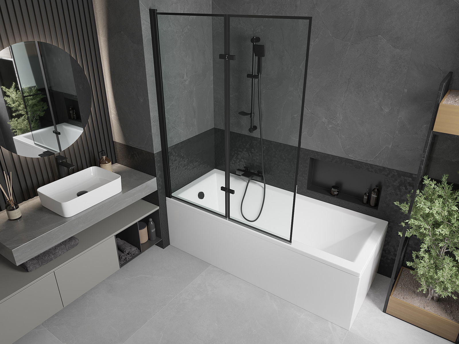 Mexen Castor badwand 2-delig 120 x 150 cm, zwarte frame, zwart - 892-120-002-70-70