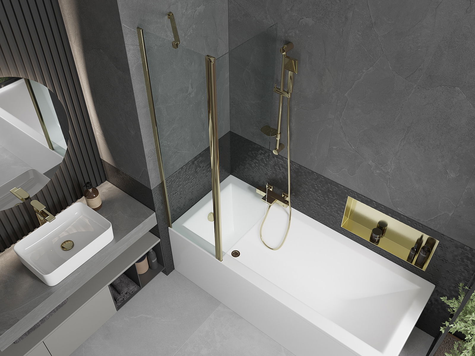 Mexen Flip badwand 2-delig 100 x 150 cm, transparant, goud - 894-100-101-50-00