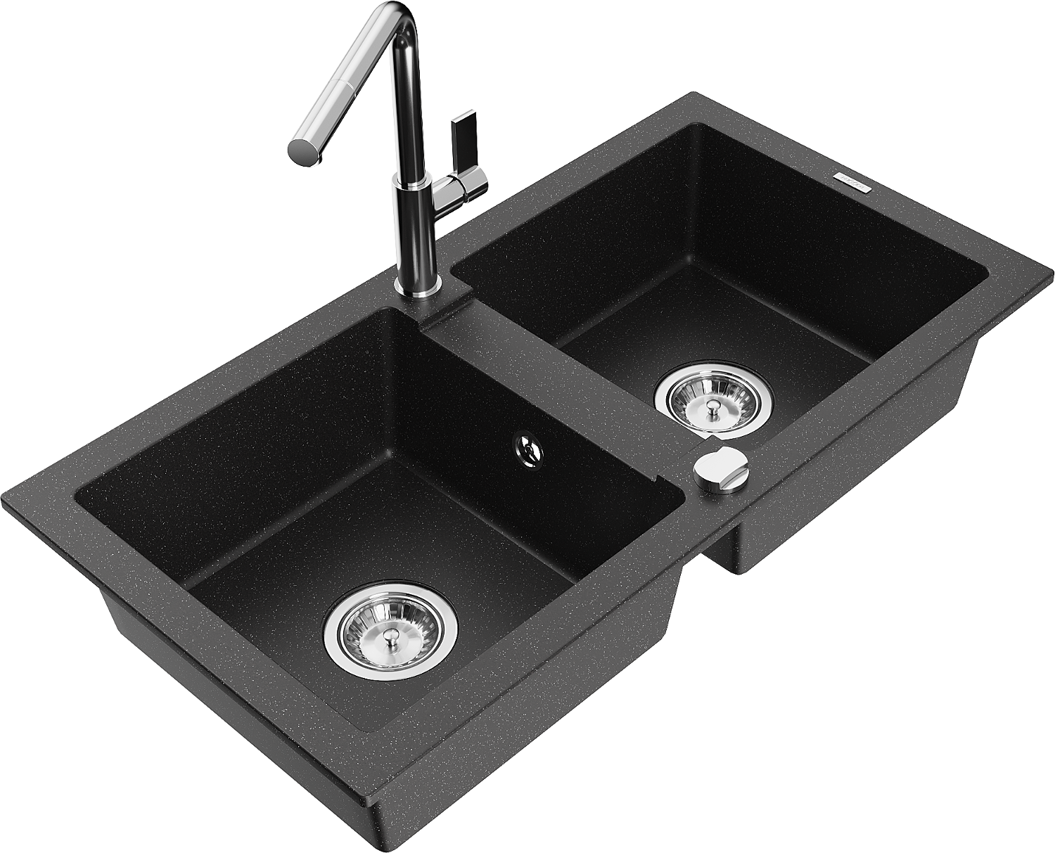 Mexen Mario granieten spoelbak met 2 kommen en keukenkraan Flora, zwart/zilver metallic - 6504-73-670401-00