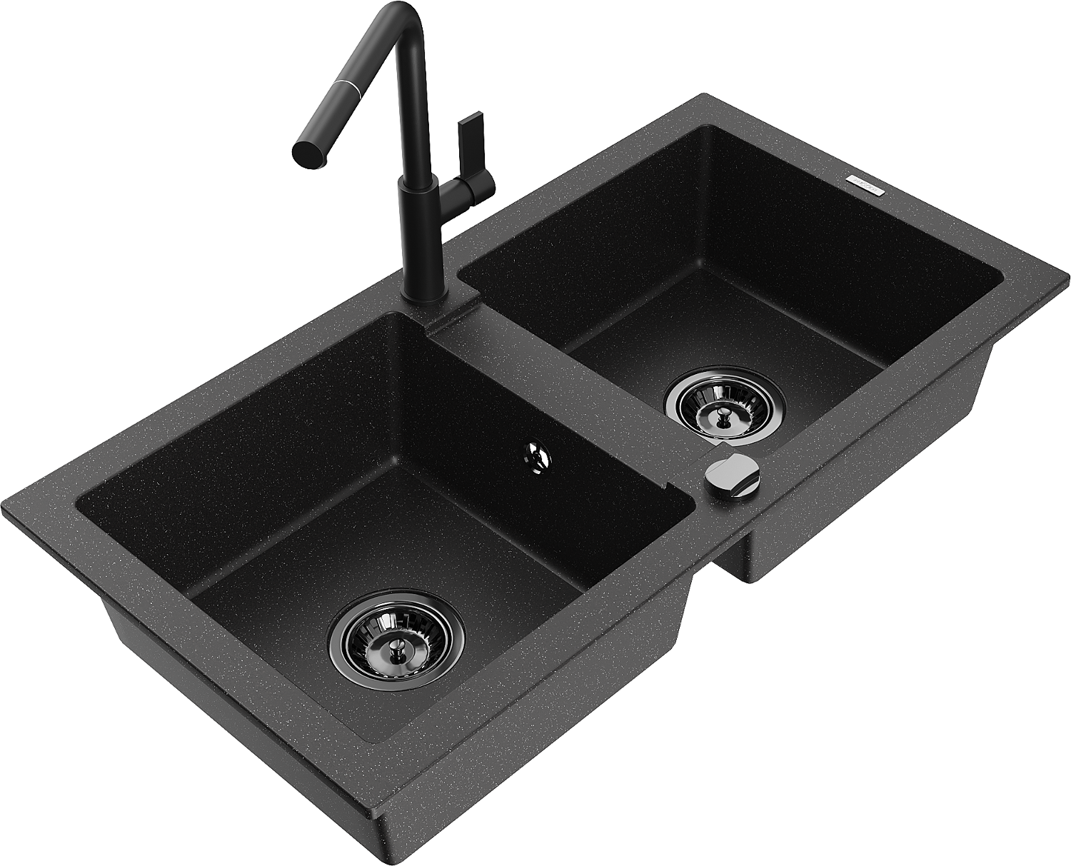 Mexen Mario granieten gootsteen 2-kamers met keukenkraan Flora, zwart/zilver metallic - 6504-73-670401-70-B