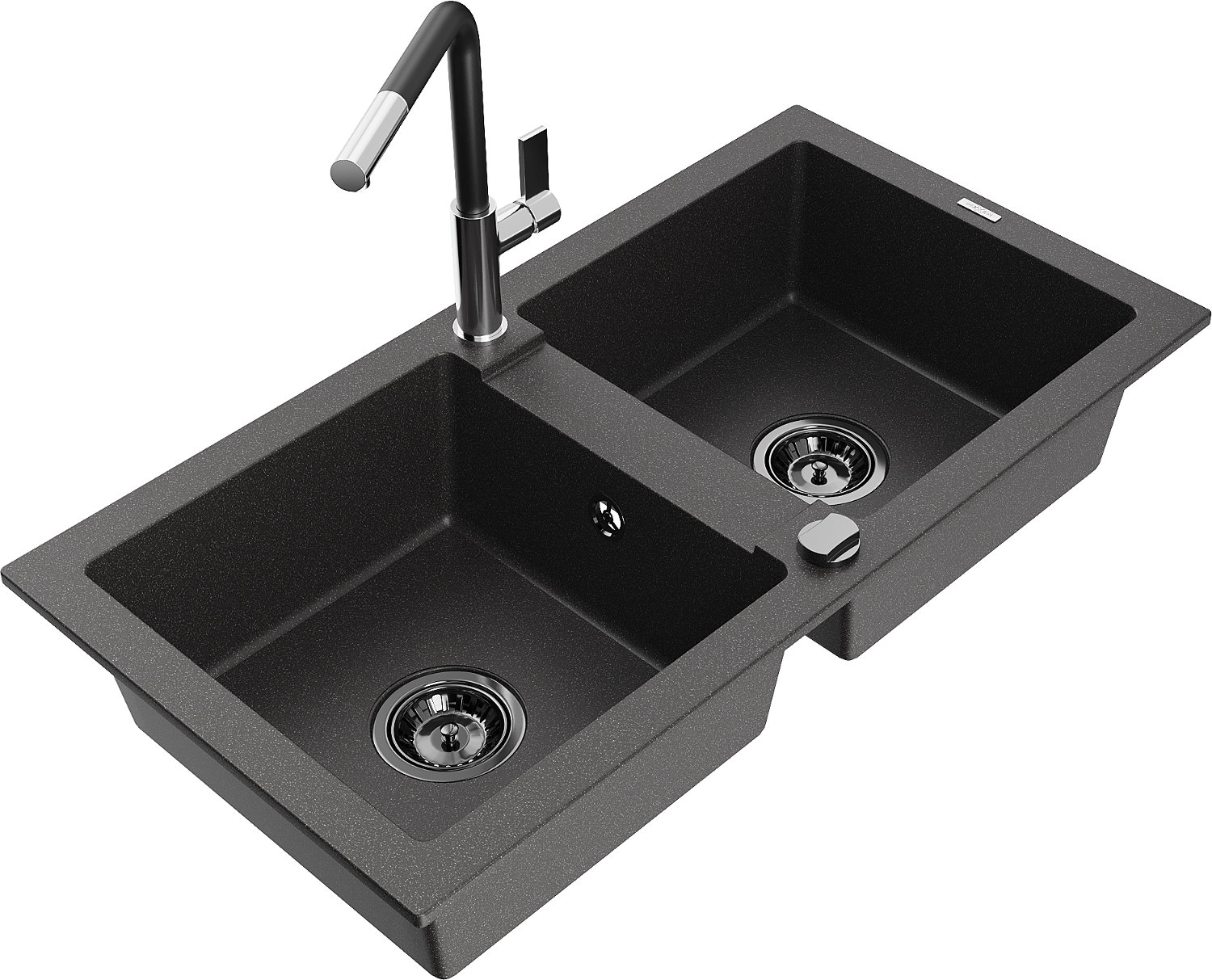 Mexen Mario granieten gootsteen 2-kamers met keukenkraan Flora, zwart gespikkeld - 6504-76-670401-07-B