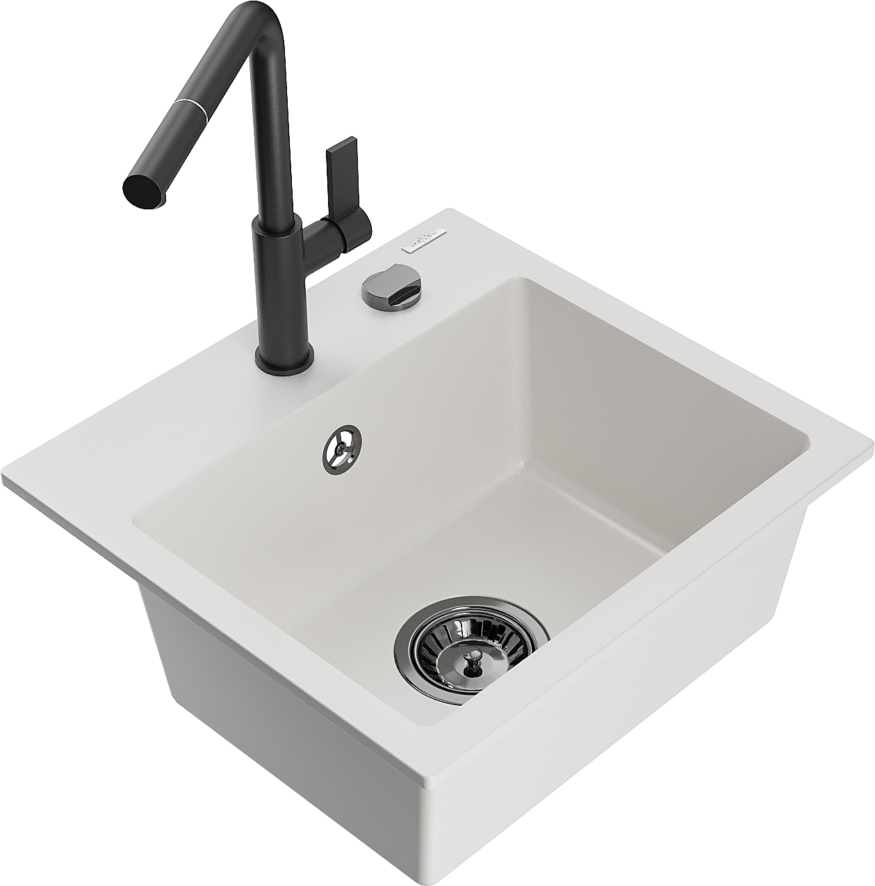 Mexen Milo granieten spoelbak 1-komerig met keukenkraan Flora, wit - 6505-20-670401-70-B