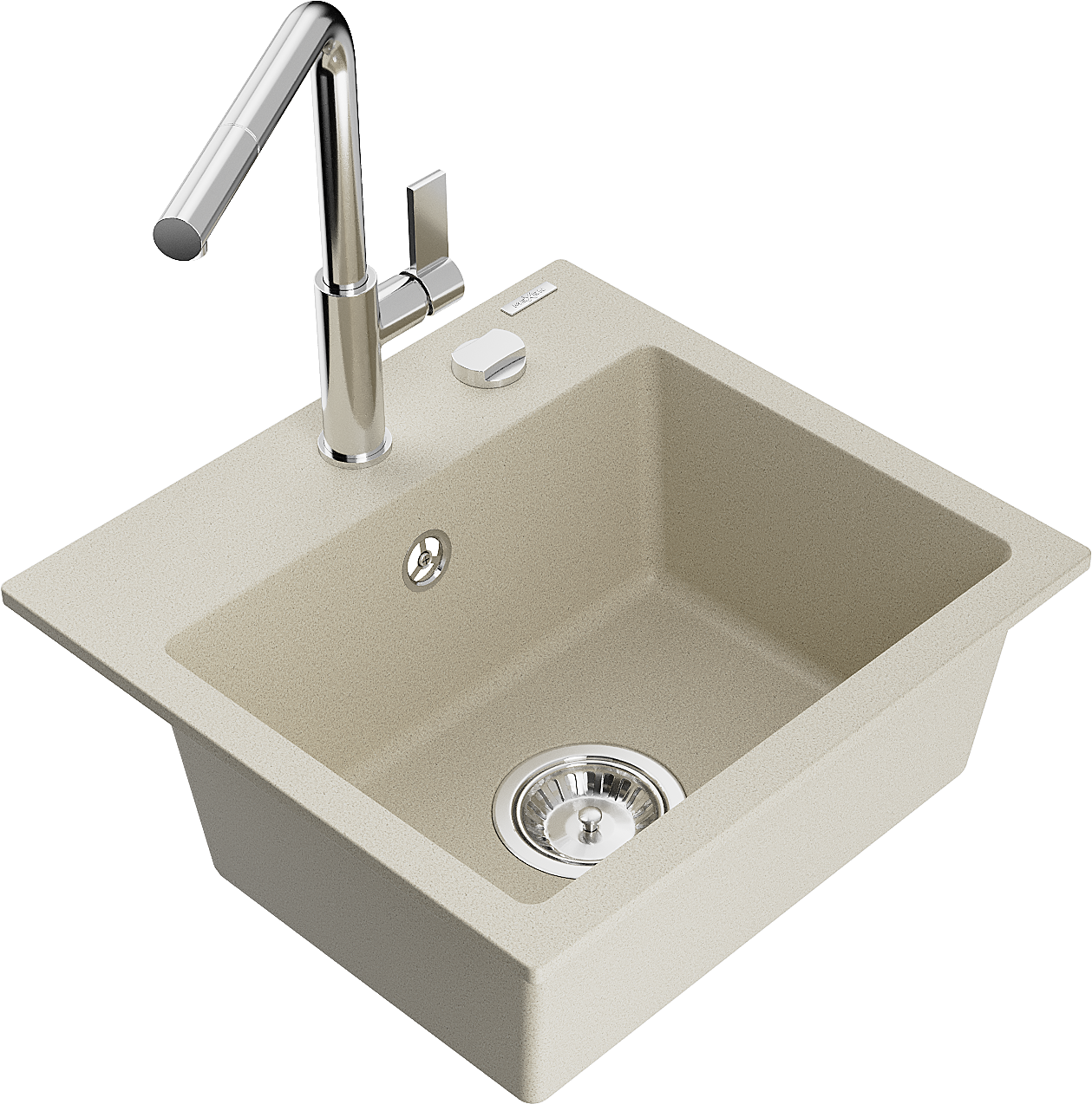 Mexen Milo granieten gootsteen 1-komors met keukenmengkraan Flora, beige - 6505-69-670401-00