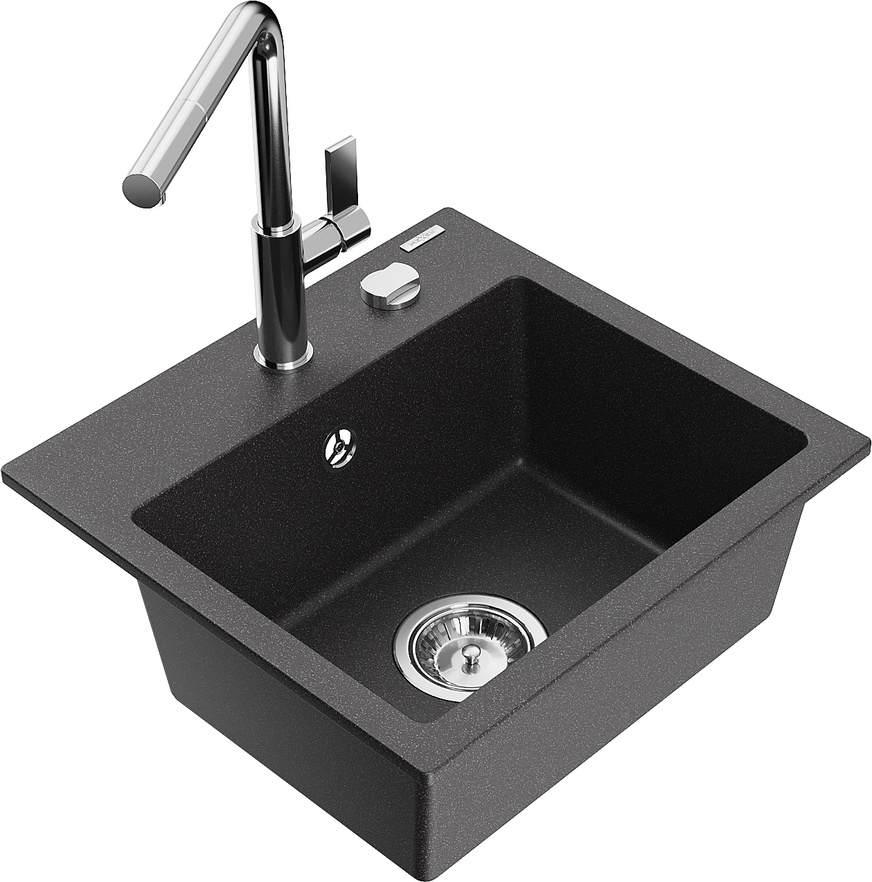 Mexen Milo granieten spoelbak met 1 bak met keukenmengkraan Flora, zwart gespikkeld - 6505-76-670401-00