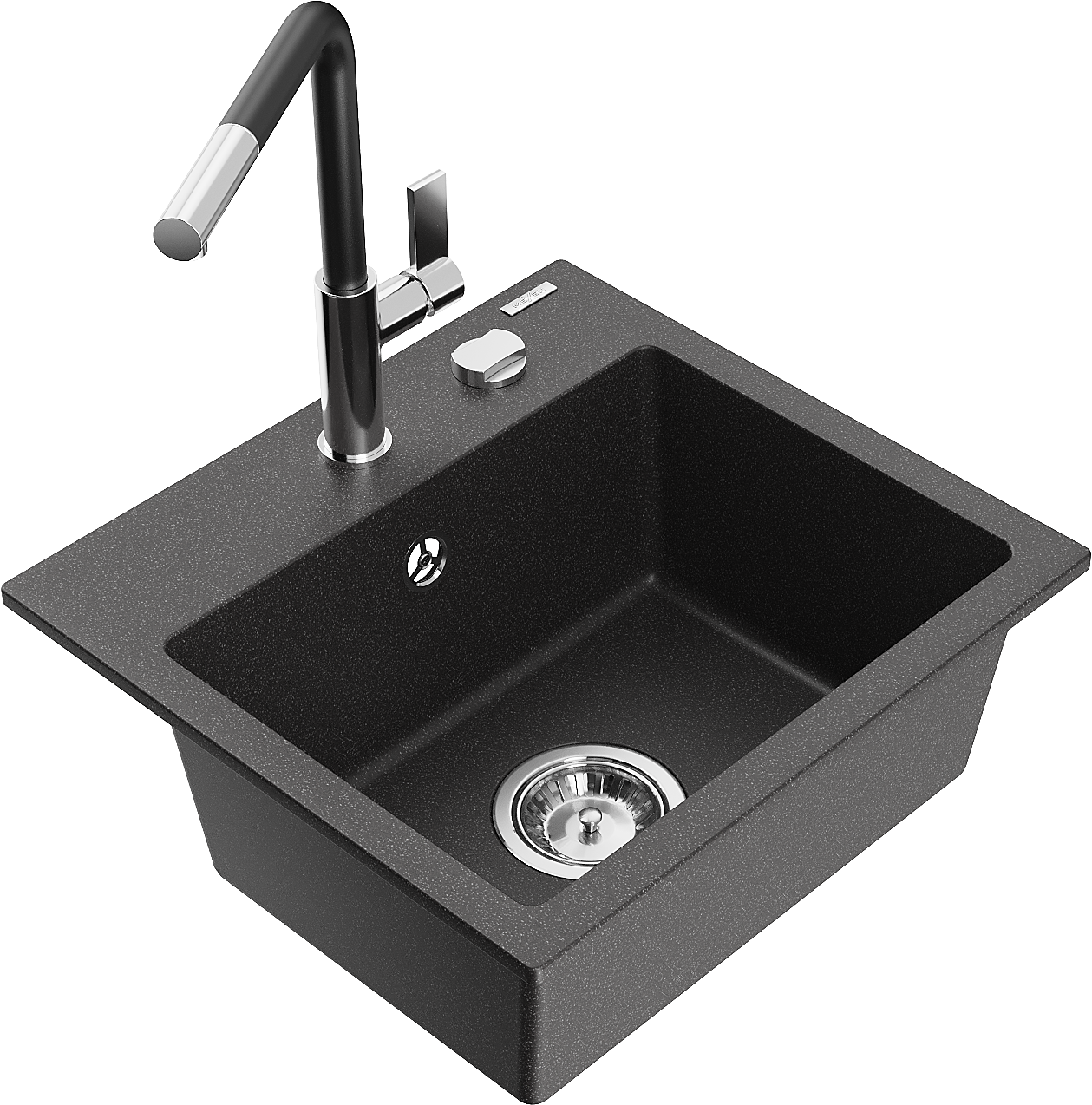 Mexen Milo granieten gootsteen 1-komors met keukenmengkraan Flora, zwart gespikkeld - 6505-76-670401-07