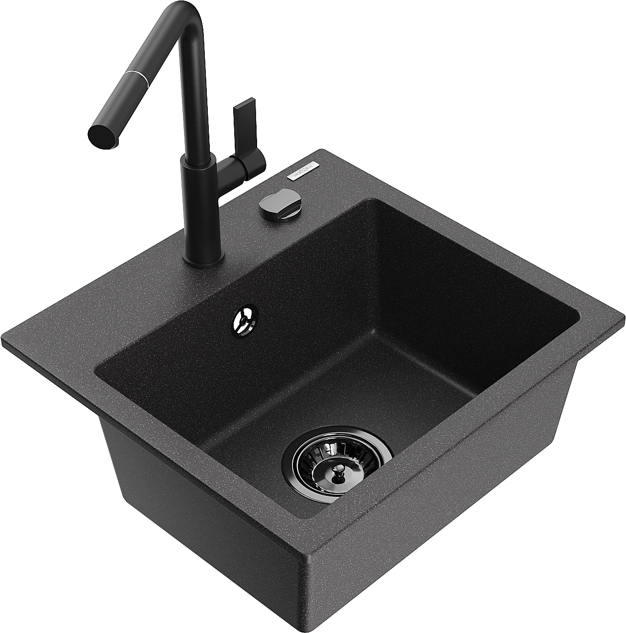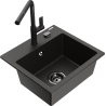 Mexen Milo granieten gootsteen 1-kamer met keukenkraan Flora, zwart gespikkeld - 6505-76-670401-70-B