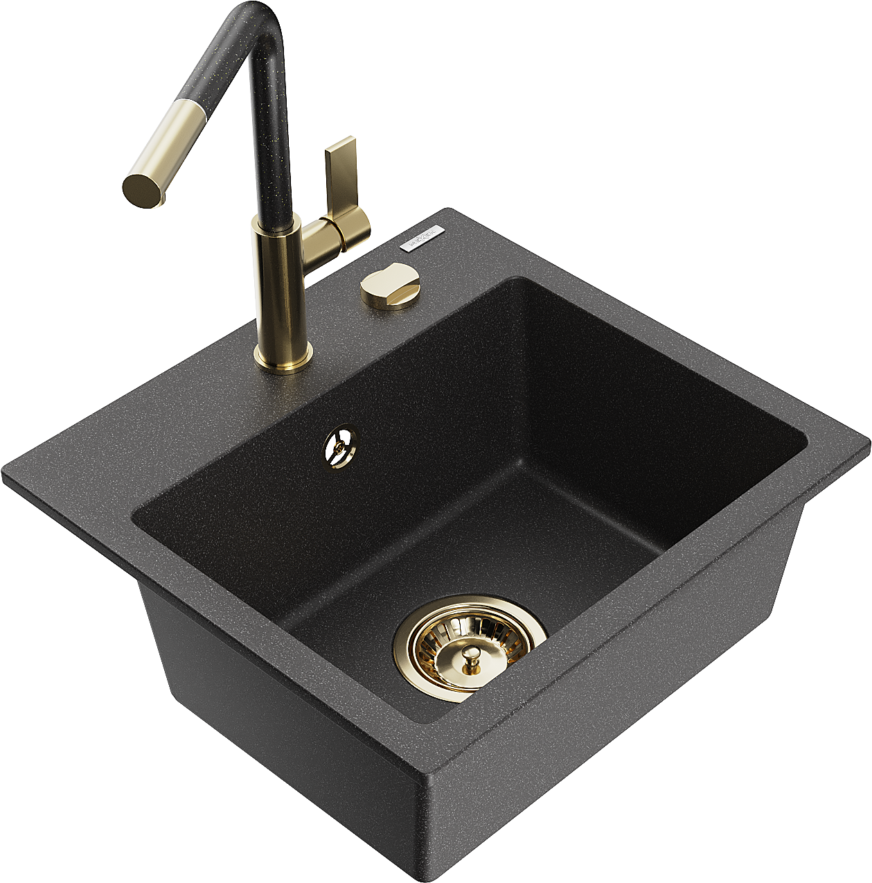 Mexen Milo granieten spoelbak met 1 bak en keukenmengkraan Flora, zwart gespikkeld - 6505-76-670401-75-G
