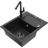 Mexen Enzo granieten gootsteen 1-komors met afdruiprek en keukenkraan Flora, zwart/goud metallic - 6506-75-670401-70-B