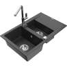Mexen Gaspar granieten spoelbak 1,5-kamer met afdruiprek en keukenmengkraan Flora, zwart/zilver - 6507-73-670401-00
