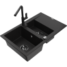 Mexen Gaspar granieten gootsteen 1,5-komoors met afdruiprek en keukenmengkraan Flora, zwart/goud - 6507-75-670401-70-B